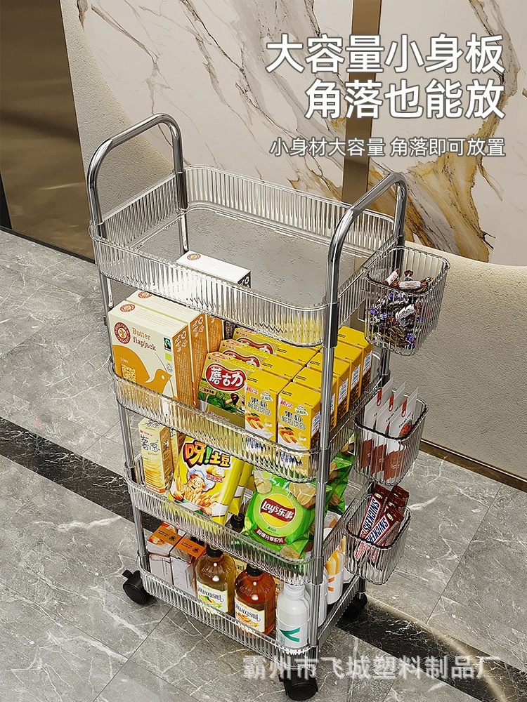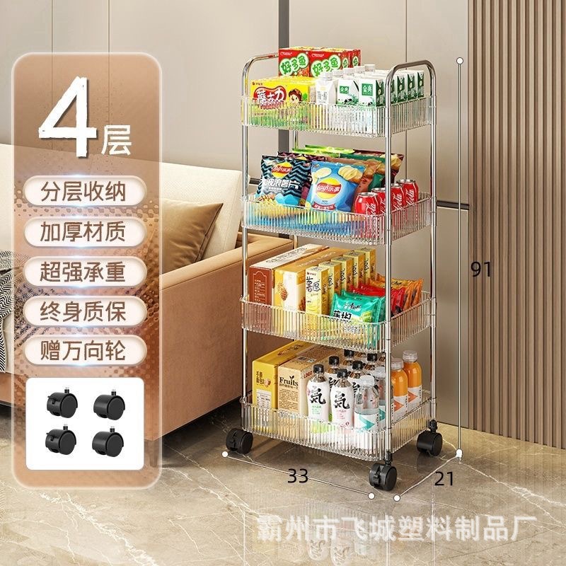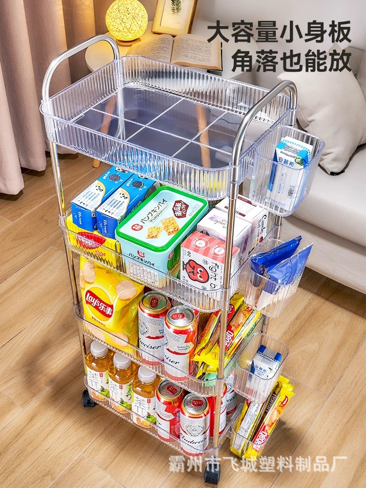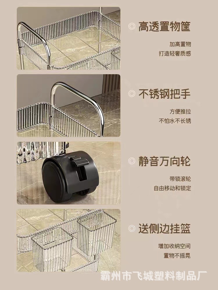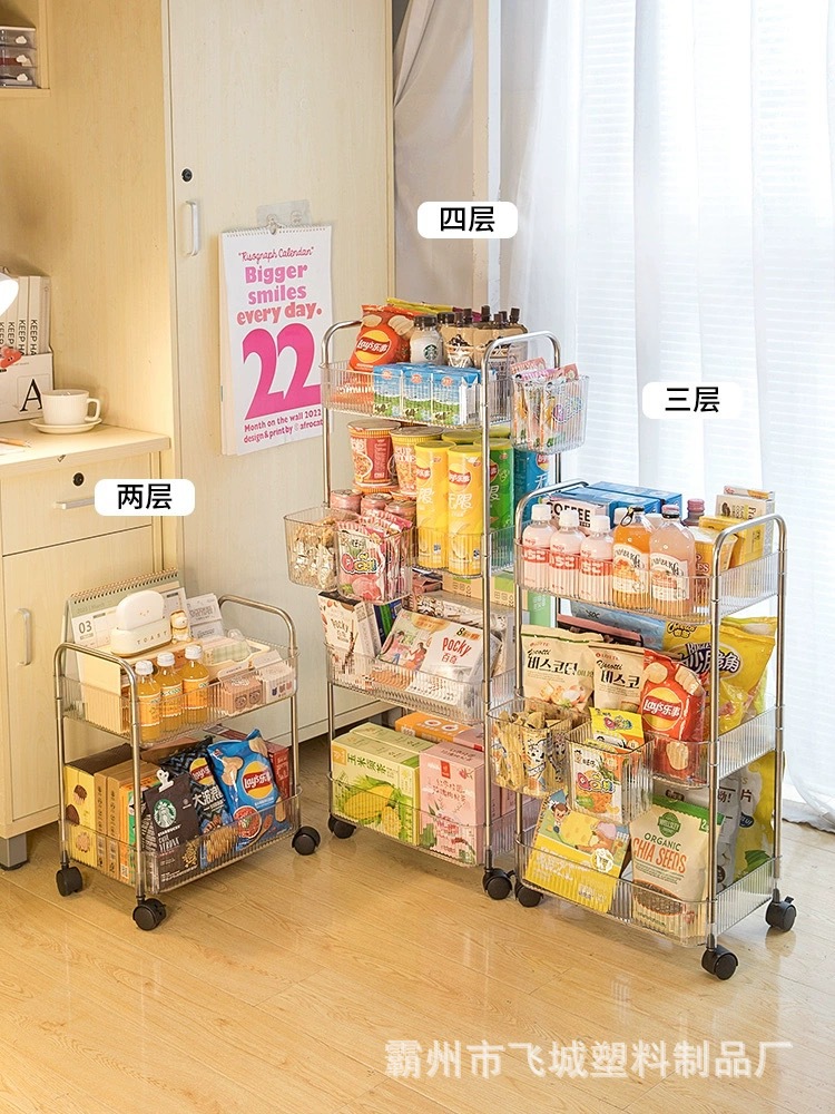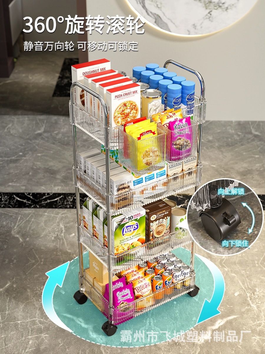 아크릴 투명 다층 수납 트롤리, 간식 선반, 이동식 욕실용품 수납 선반 도매