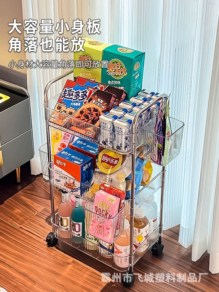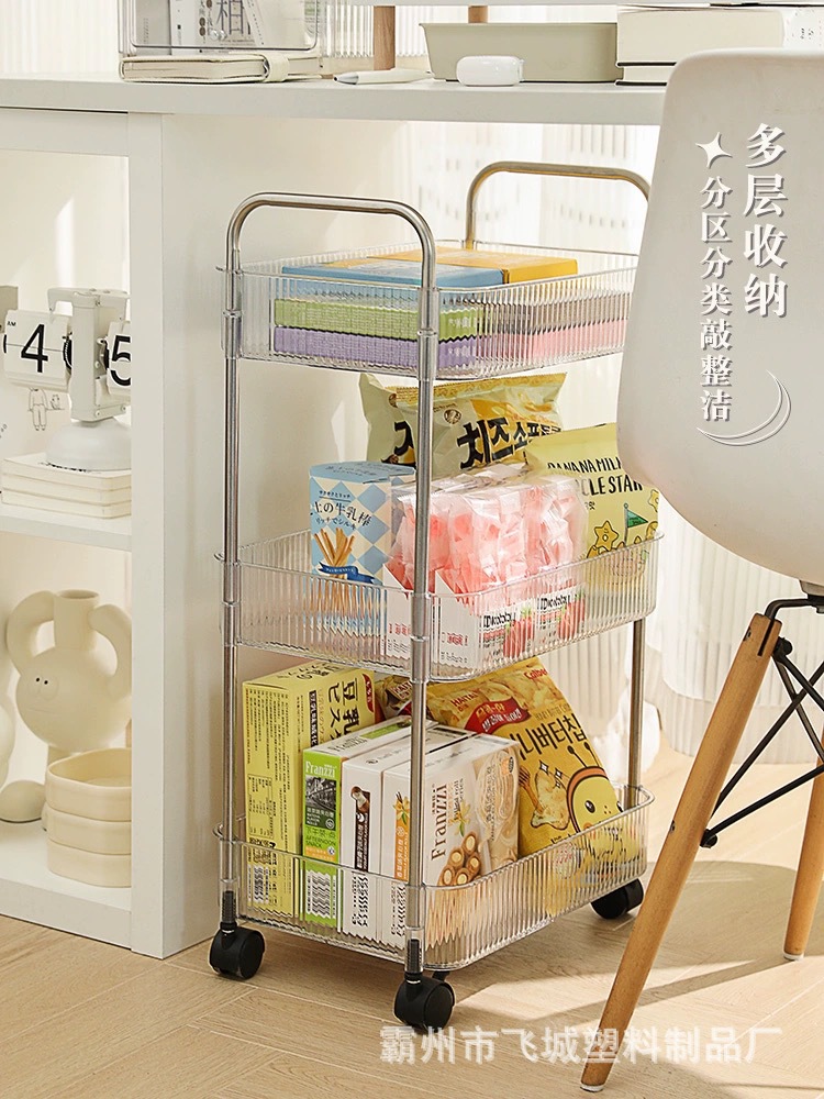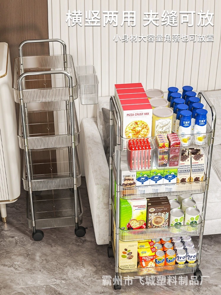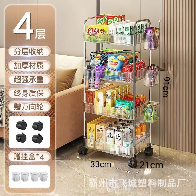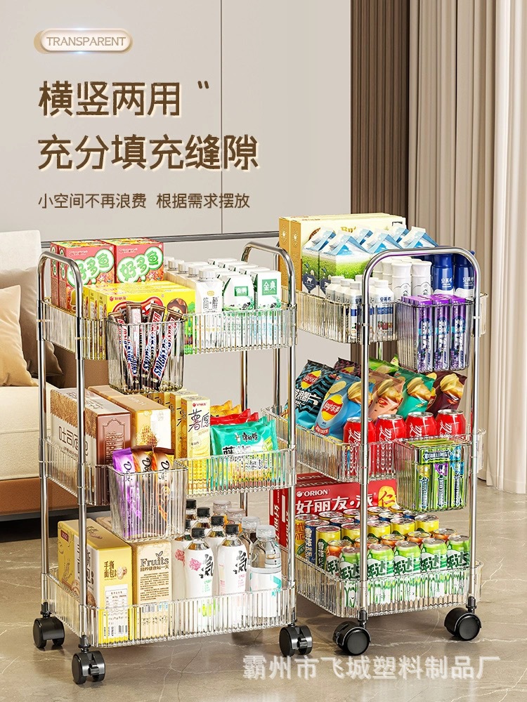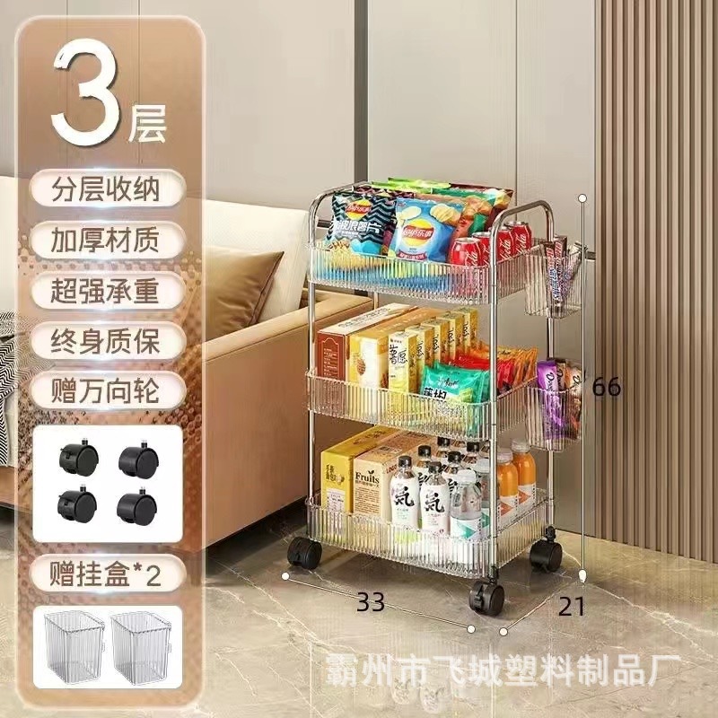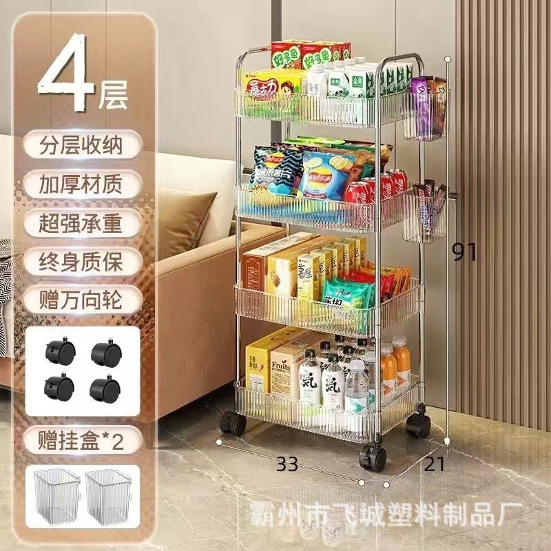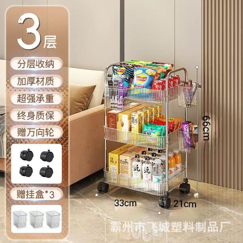 아크릴 투명 다층 수납 트롤리, 간식 선반, 이동식 욕실용품 수납 선반 도매
