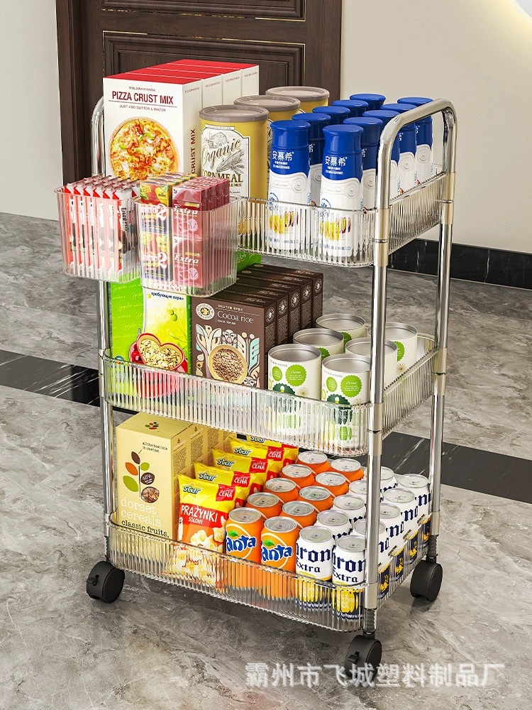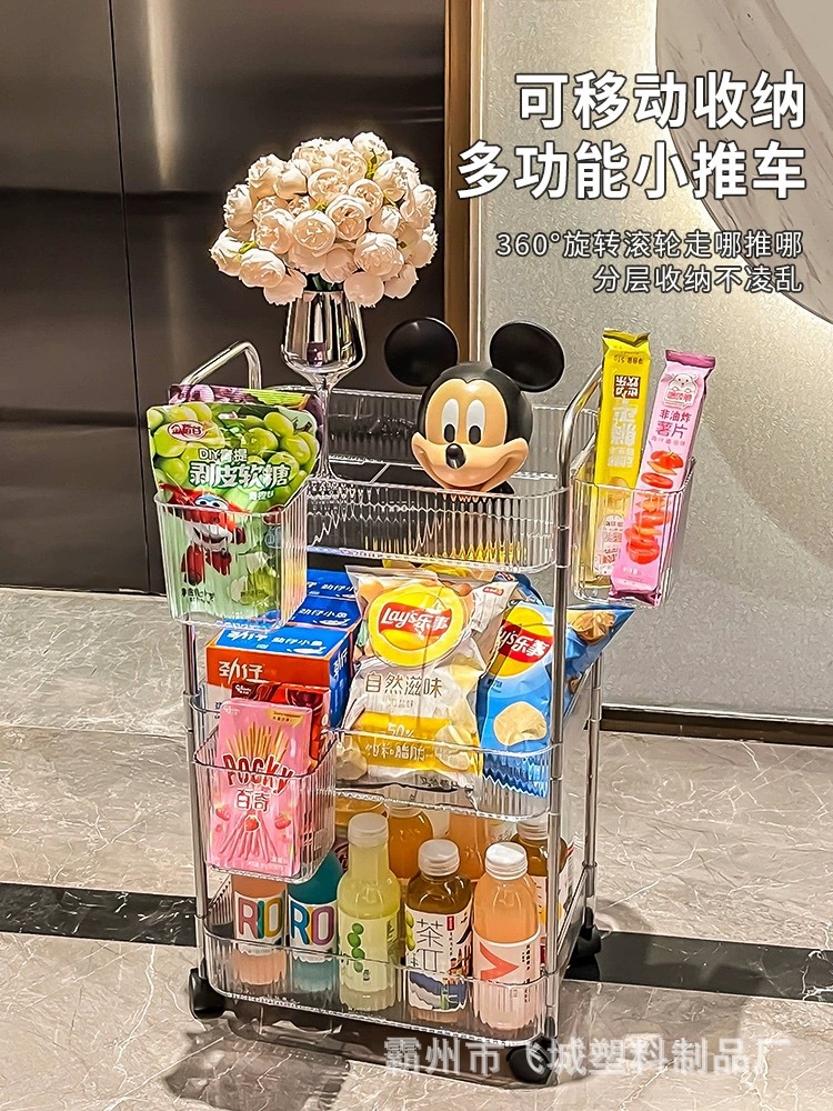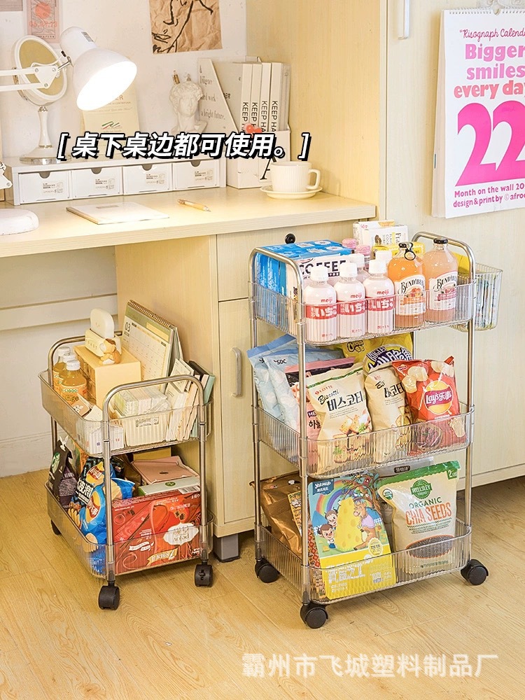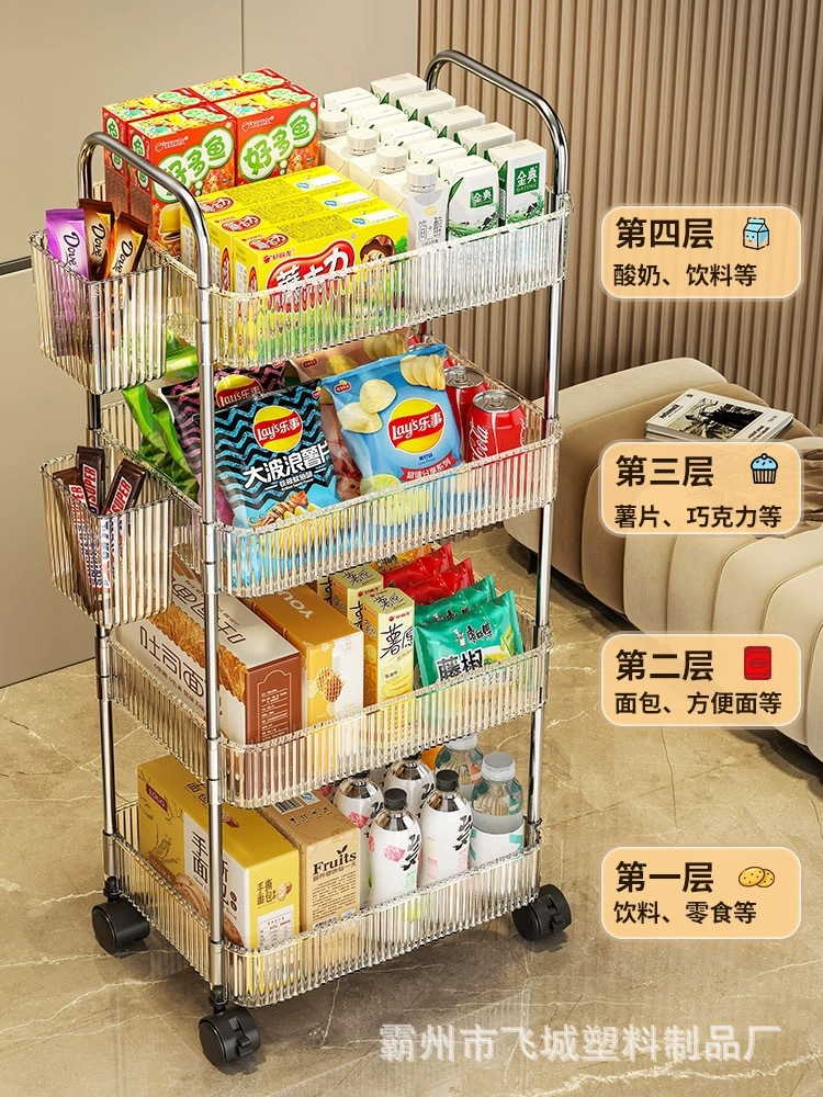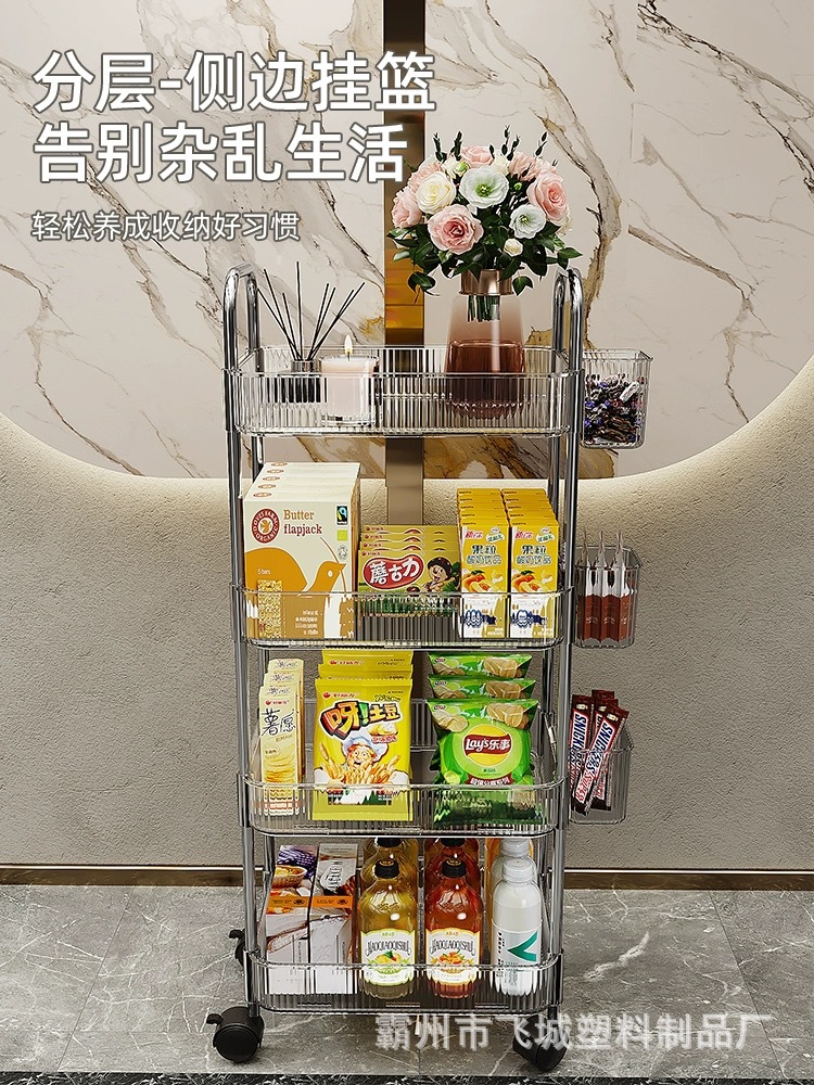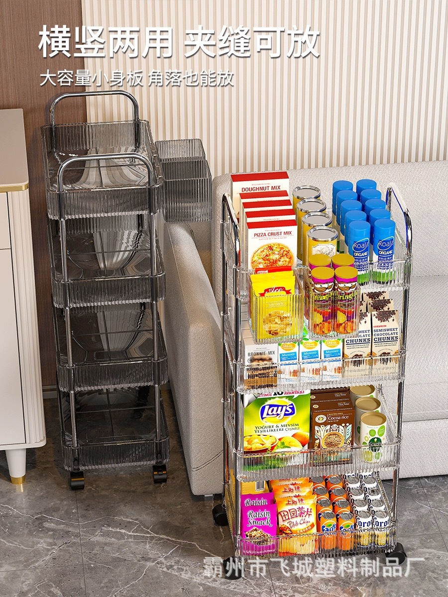 아크릴 투명 다층 수납 트롤리, 간식 선반, 이동식 욕실용품 수납 선반 도매