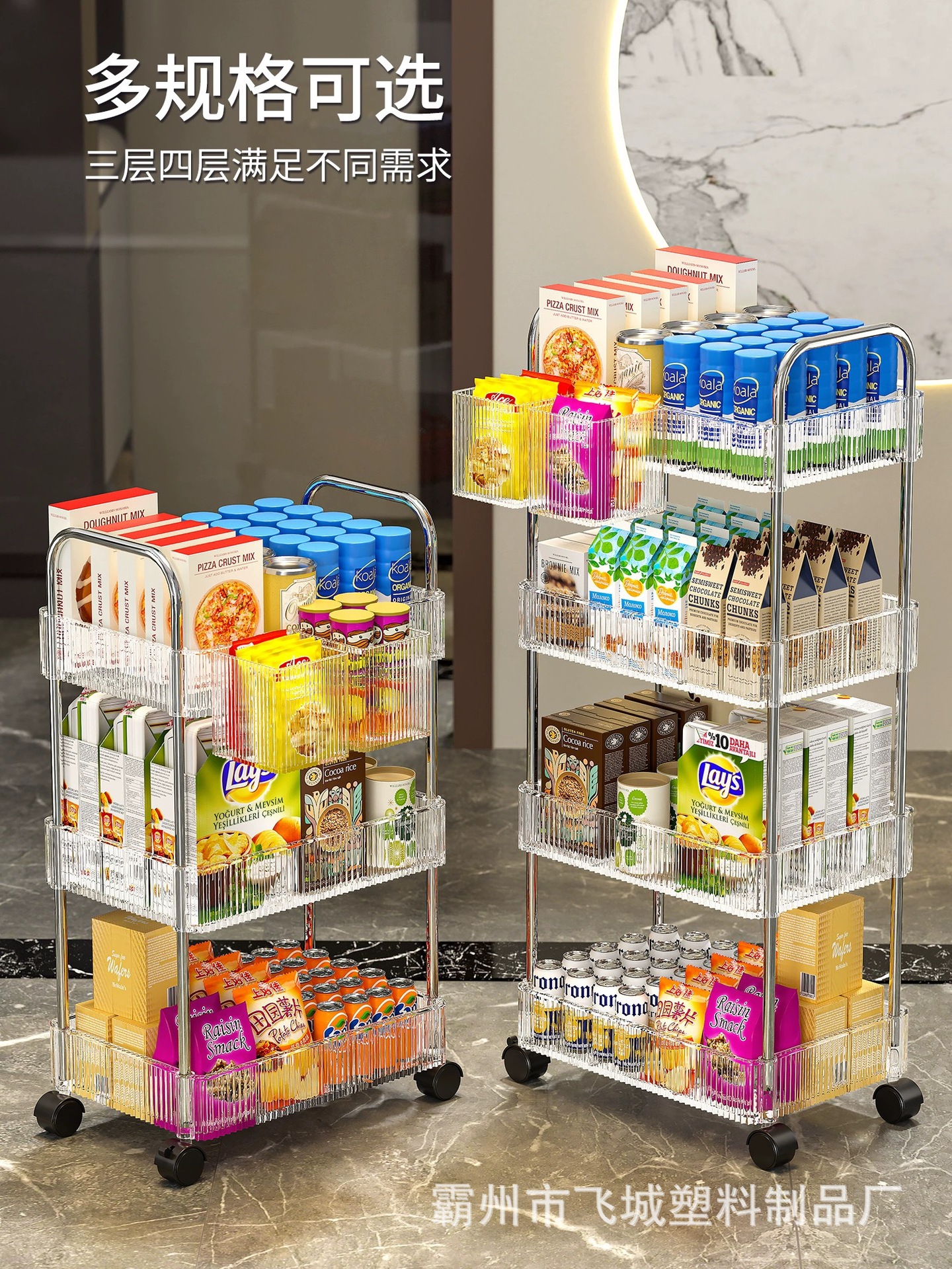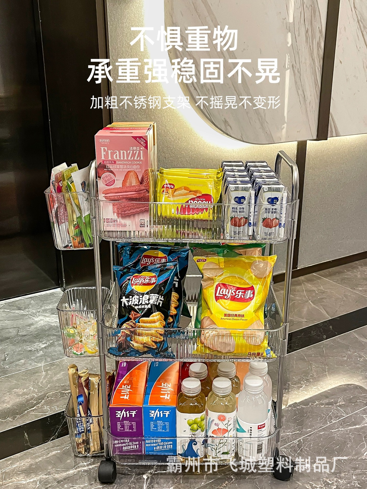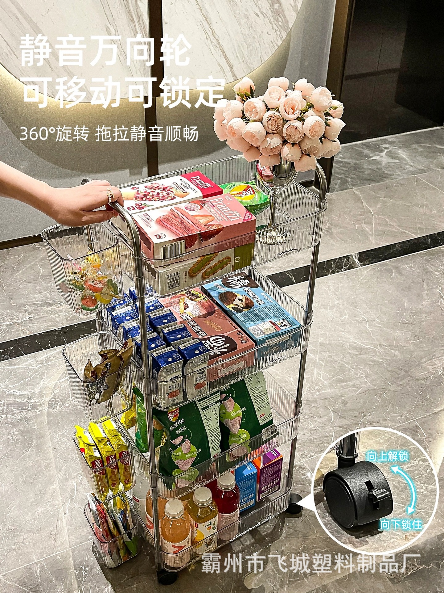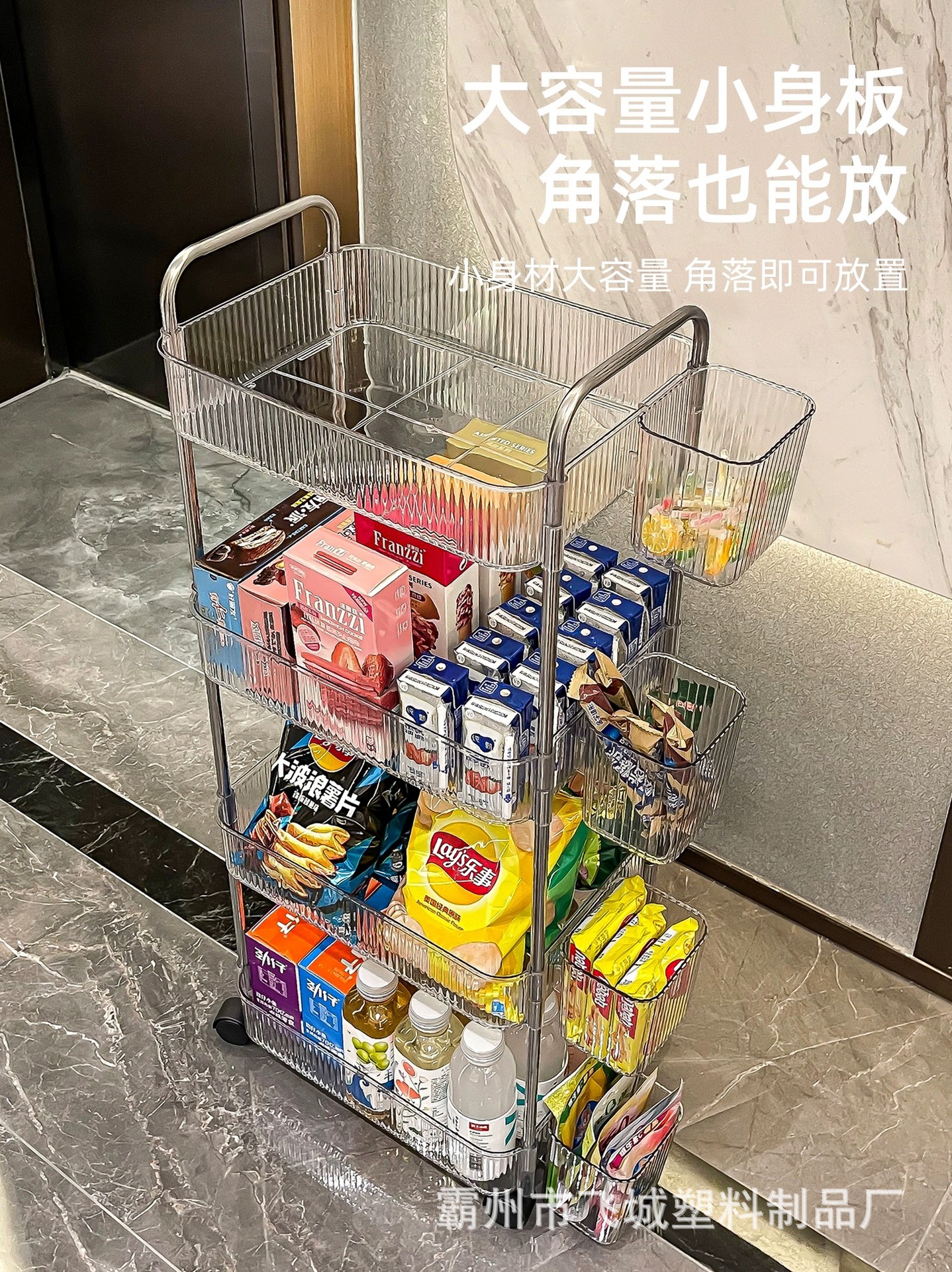 아크릴 투명 다층 수납 트롤리, 간식 선반, 이동식 욕실용품 수납 선반 도매