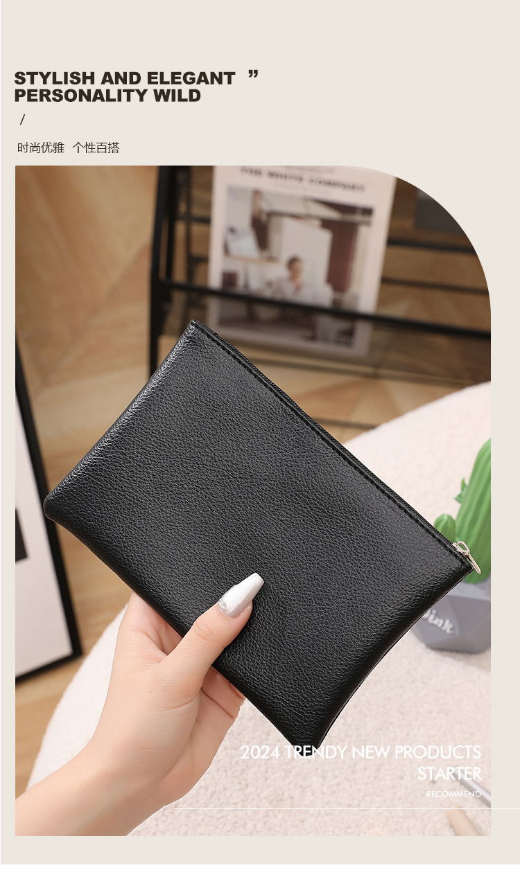 [현장 도매] 2024 새로운 litchi 긴 숙녀 손 가방 화장품 가방 저장 가방 휴대 전화 지갑