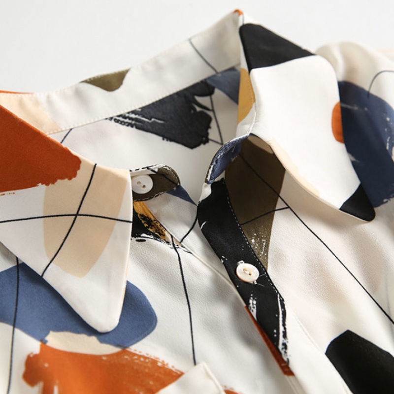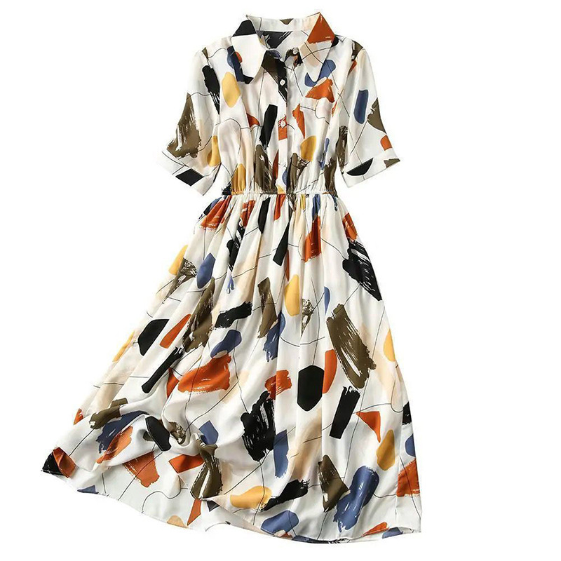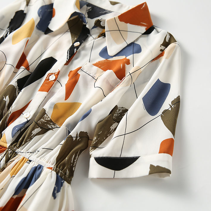 셔츠 원피스 여성 여름 2024 새로운 슬리밍 우아한 틈새 디자인 꽃 쉬폰 세련된 독특한 치마