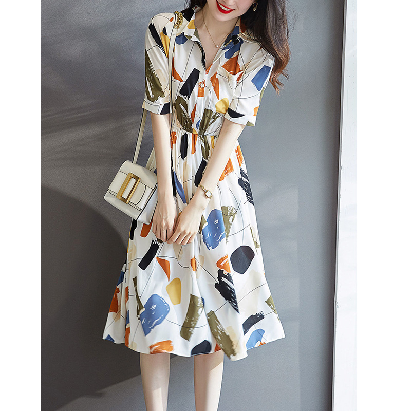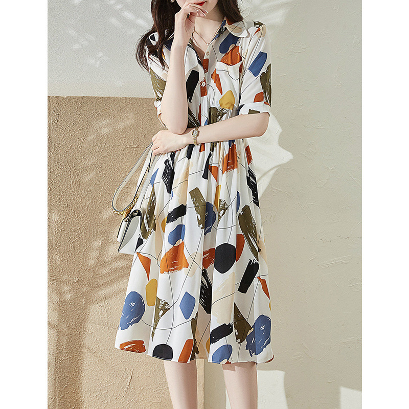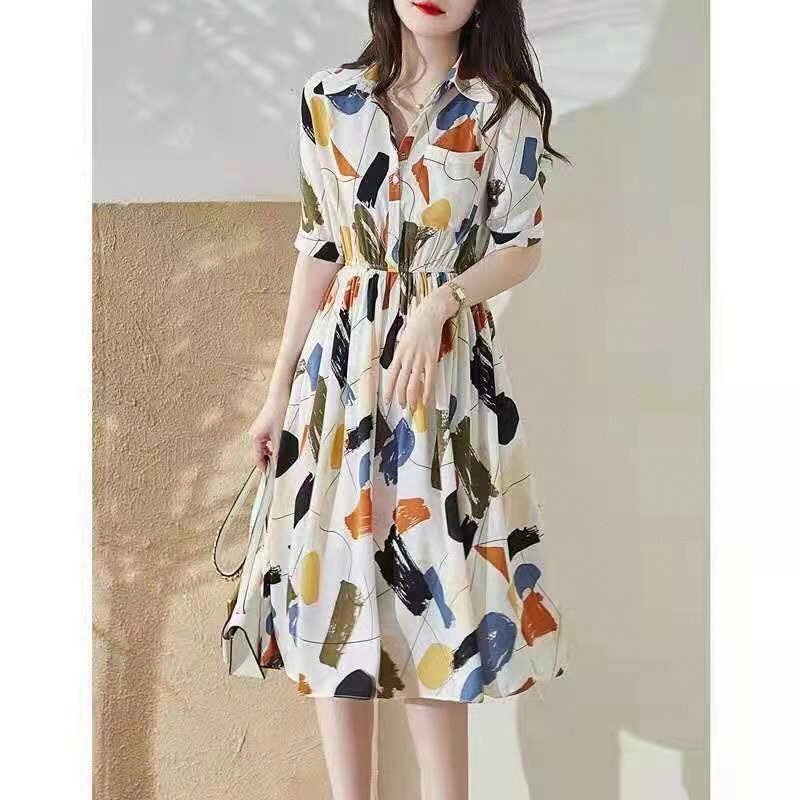 셔츠 원피스 여성 여름 2024 새로운 슬리밍 우아한 틈새 디자인 꽃 쉬폰 세련된 독특한 치마스토어 가기