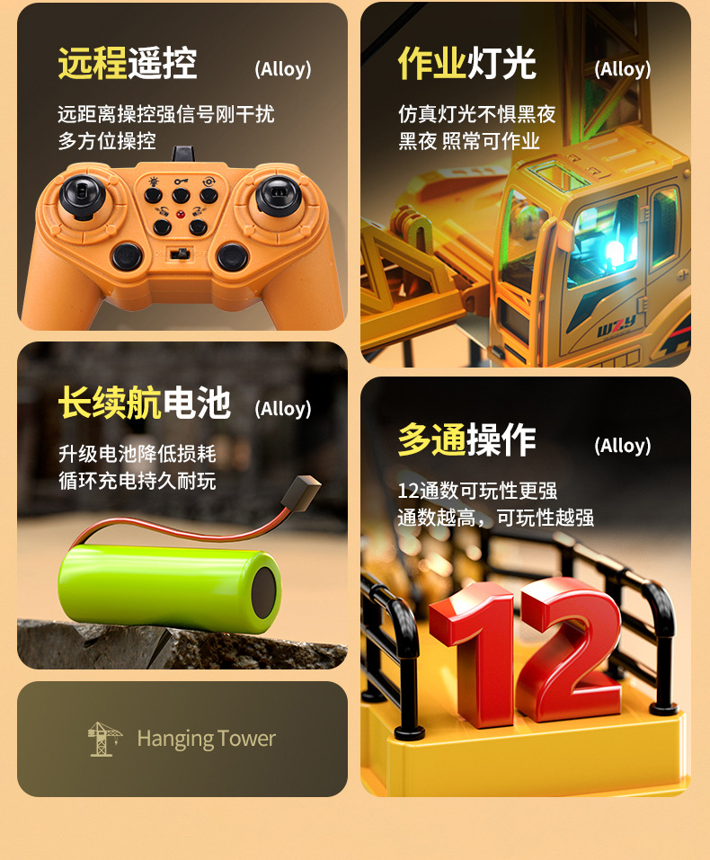 1.1 미터 원격 제어 타워 크레인 장난감 대형 타워 크레인 트럭 크레인 크레인 합금 모델 국경