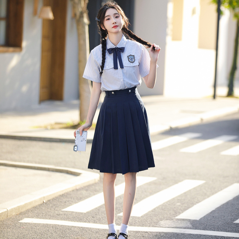 대학 스타일 졸업 시즌 수업 세트 합창 공연 학생 중학생 짧은 소매 주름 치마 학교 게임 세트스토어 가기