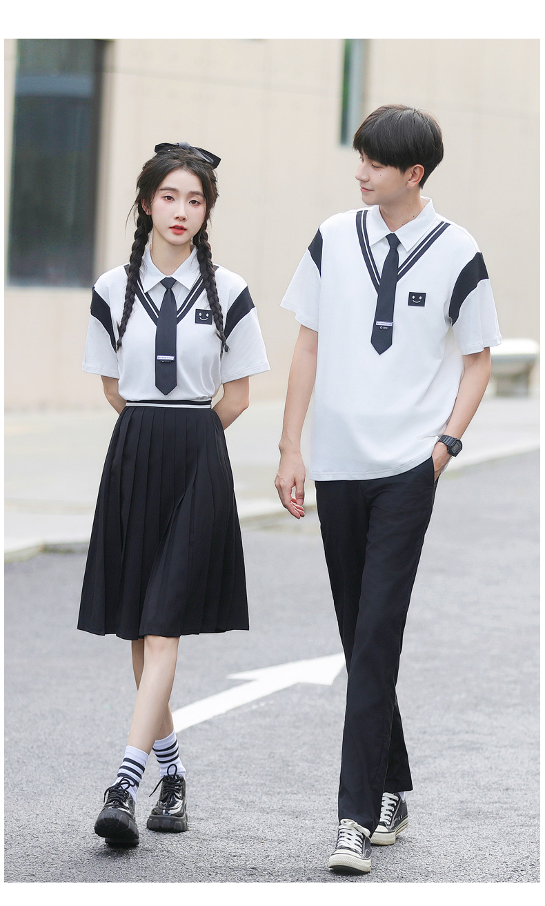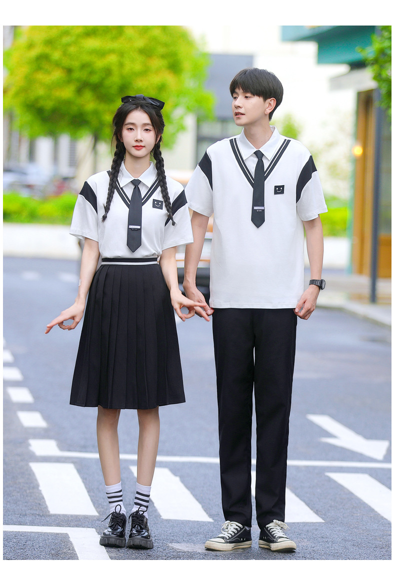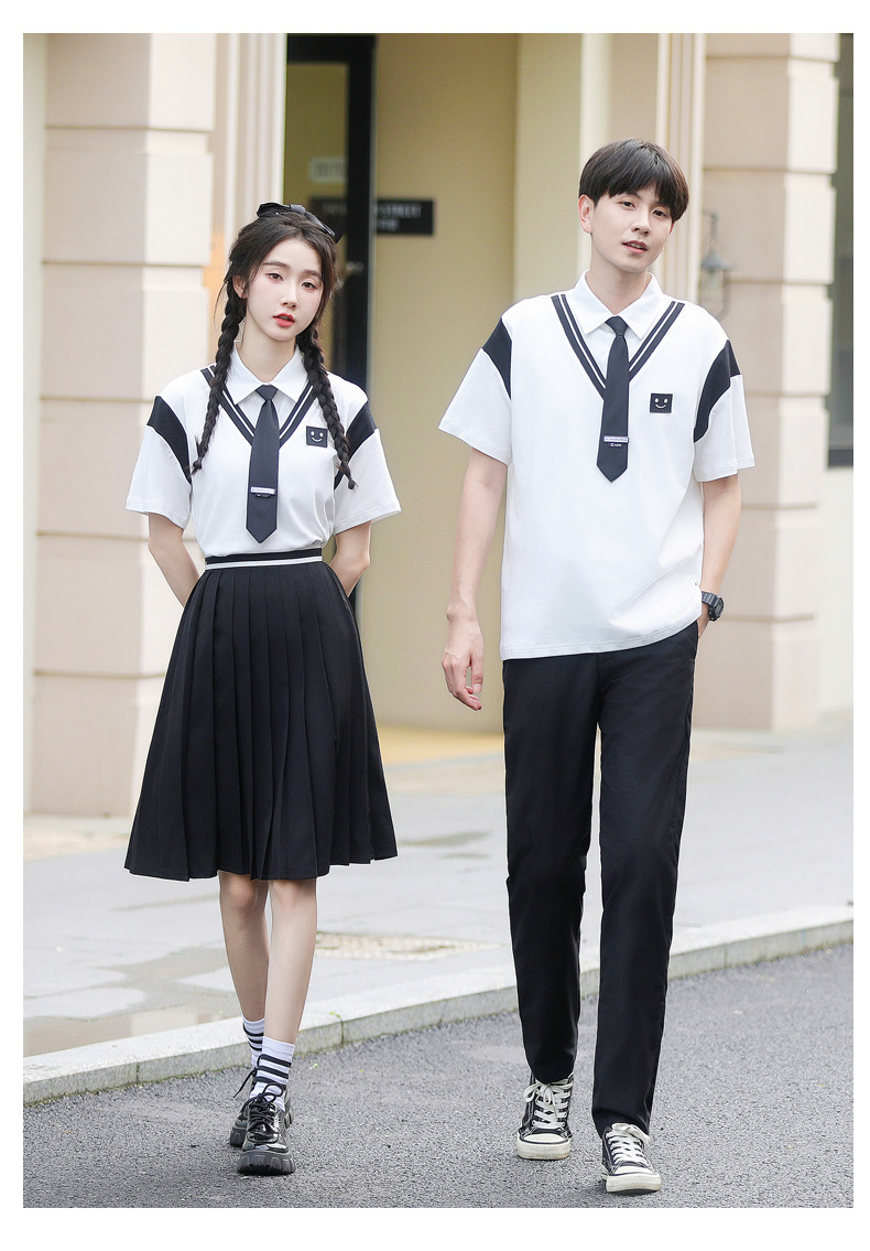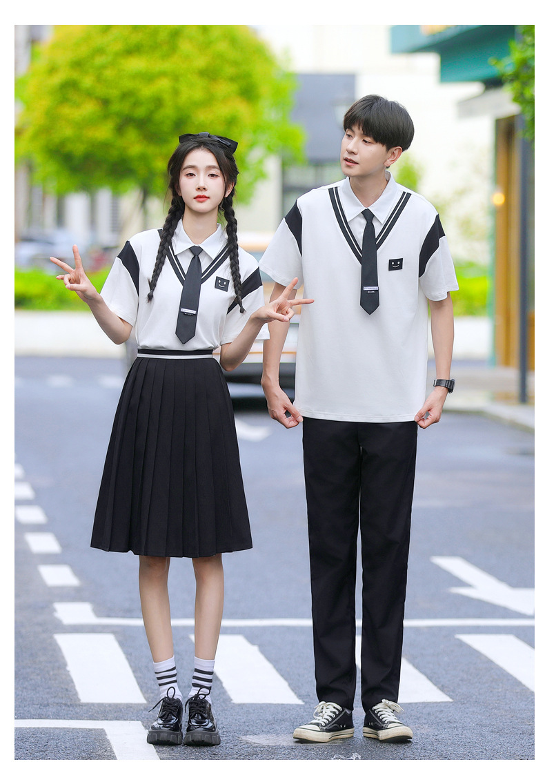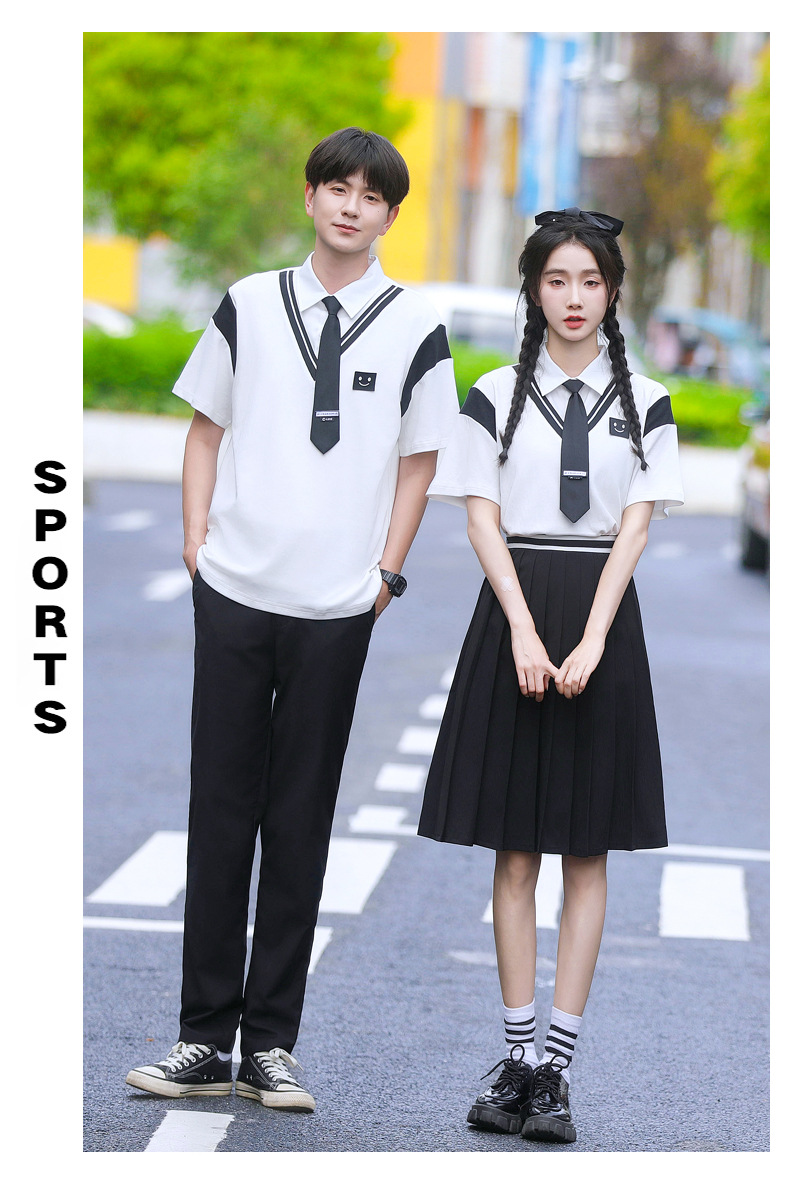 대학 스타일 커플 세트 여름 2024 졸업 시즌 고등학생 클래스 옷 바느질 영국 디자인 스커트 세트