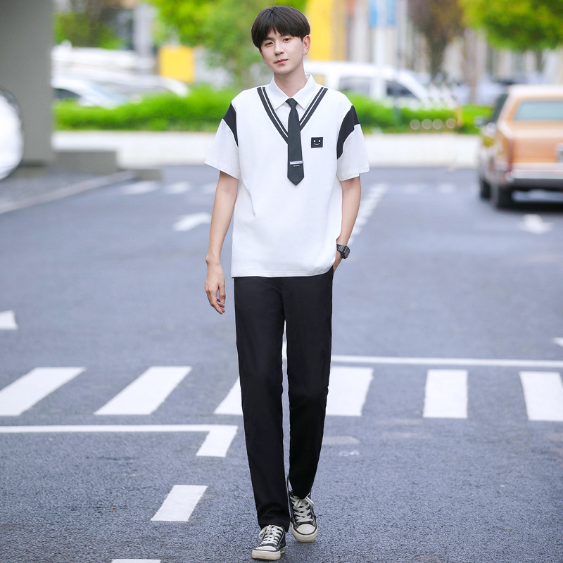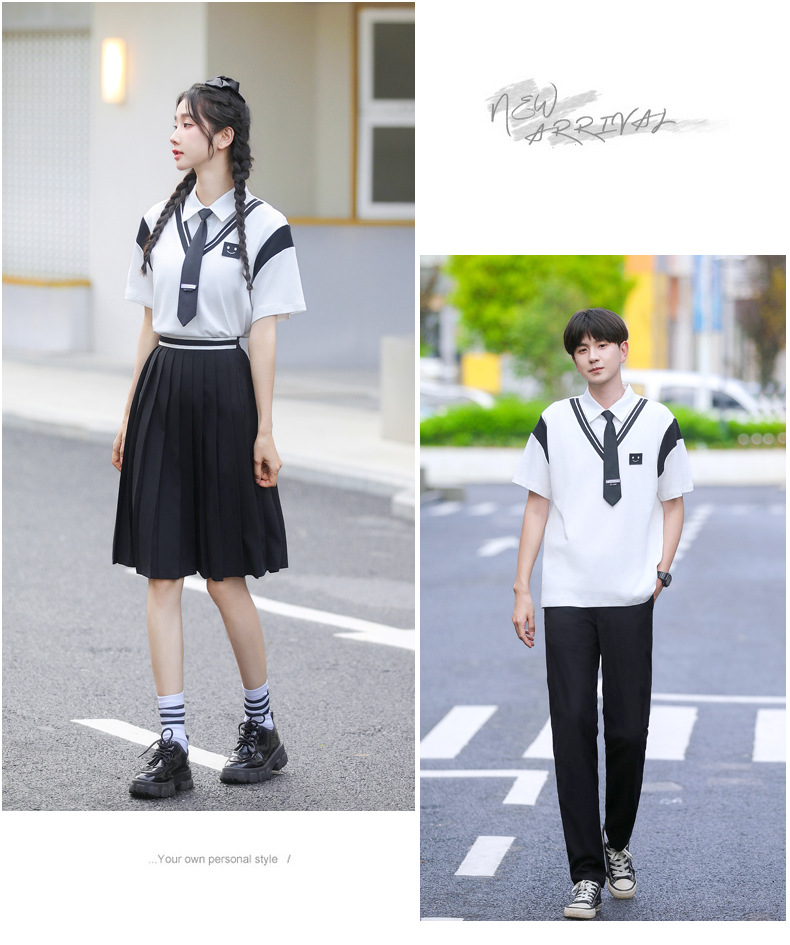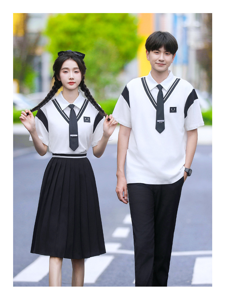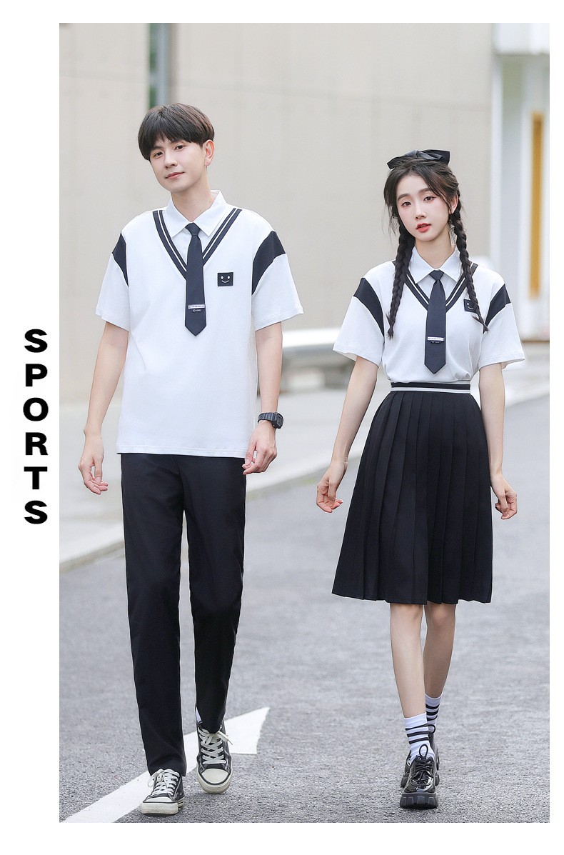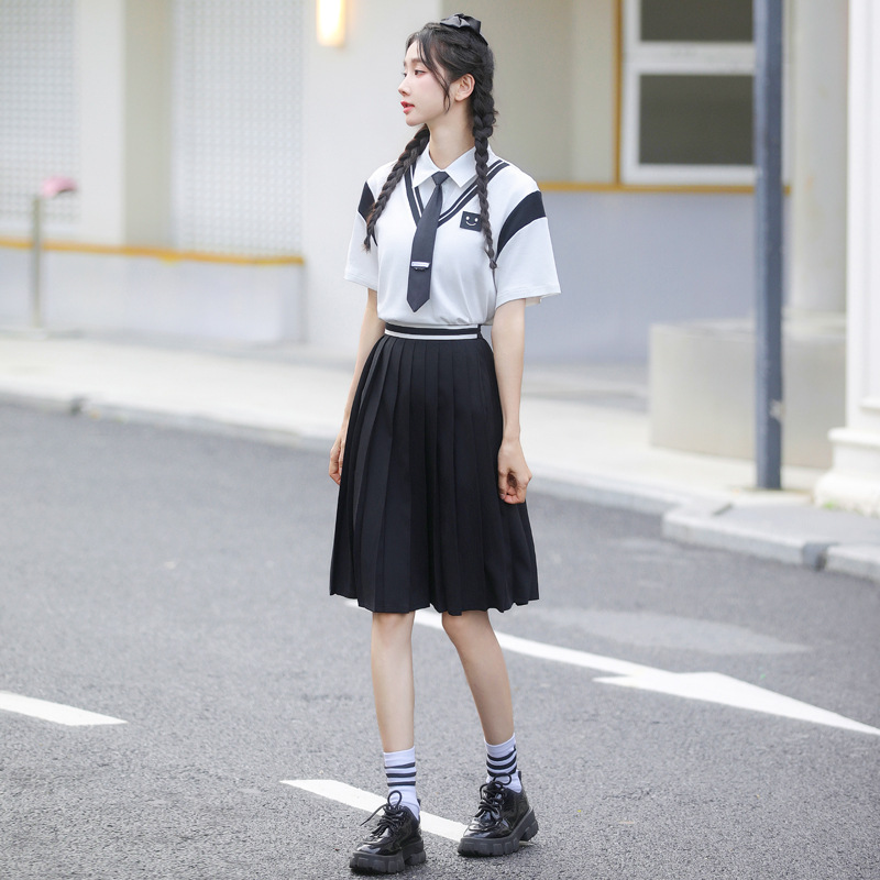 대학 스타일 커플 세트 여름 2024 졸업 시즌 고등학생 클래스 옷 바느질 영국 디자인 스커트 세트