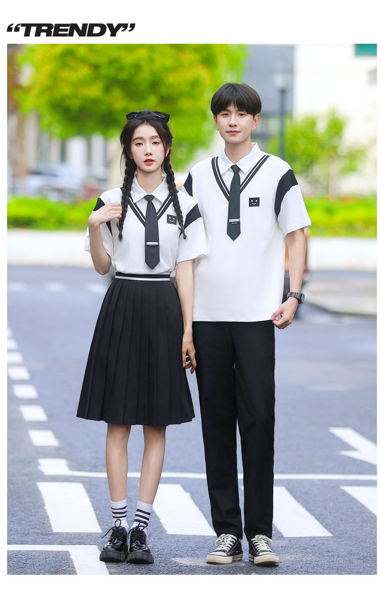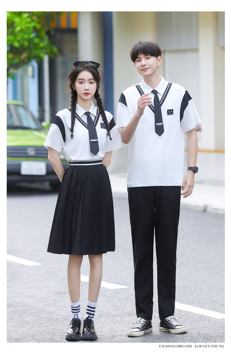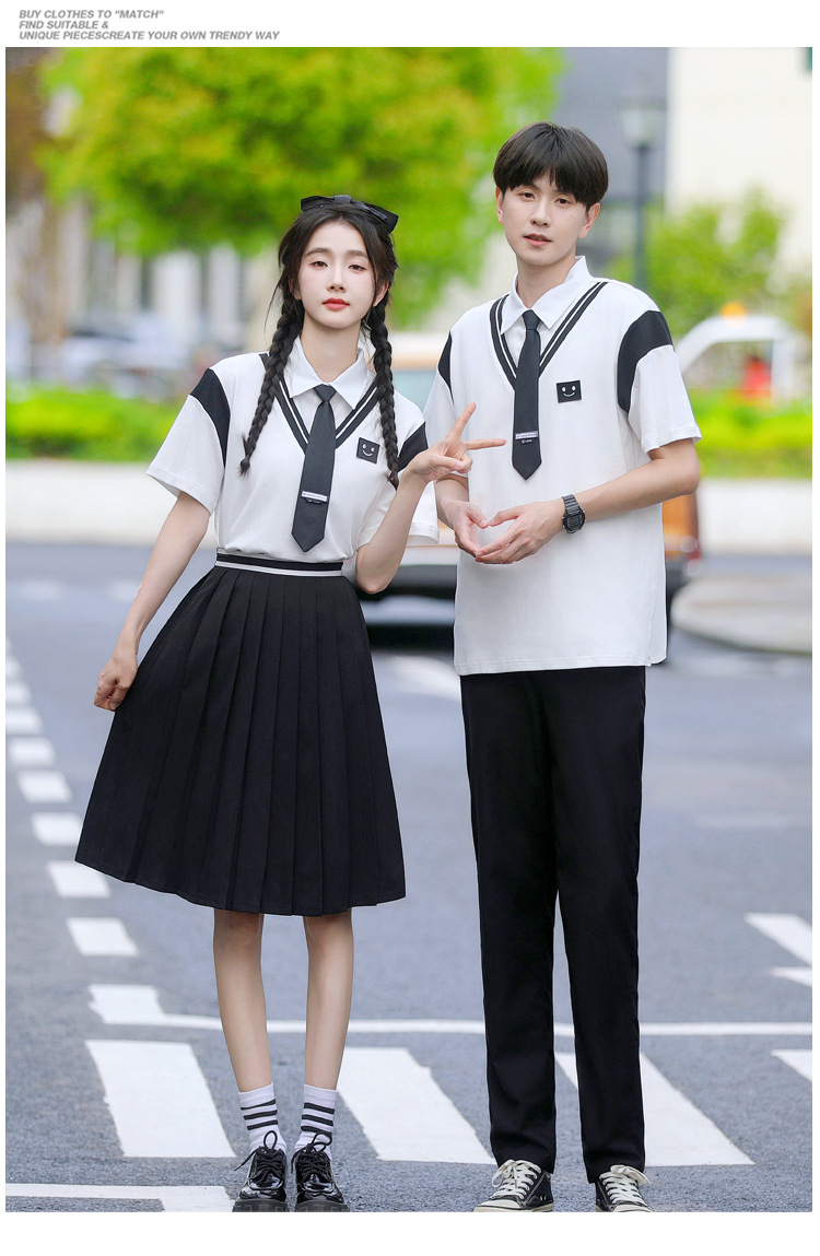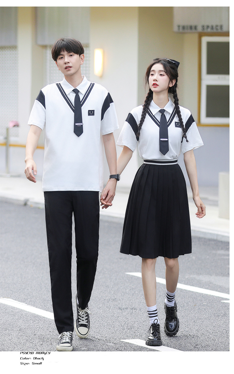 대학 스타일 커플 세트 여름 2024 졸업 시즌 고등학생 클래스 옷 바느질 영국 디자인 스커트 세트스토어 가기