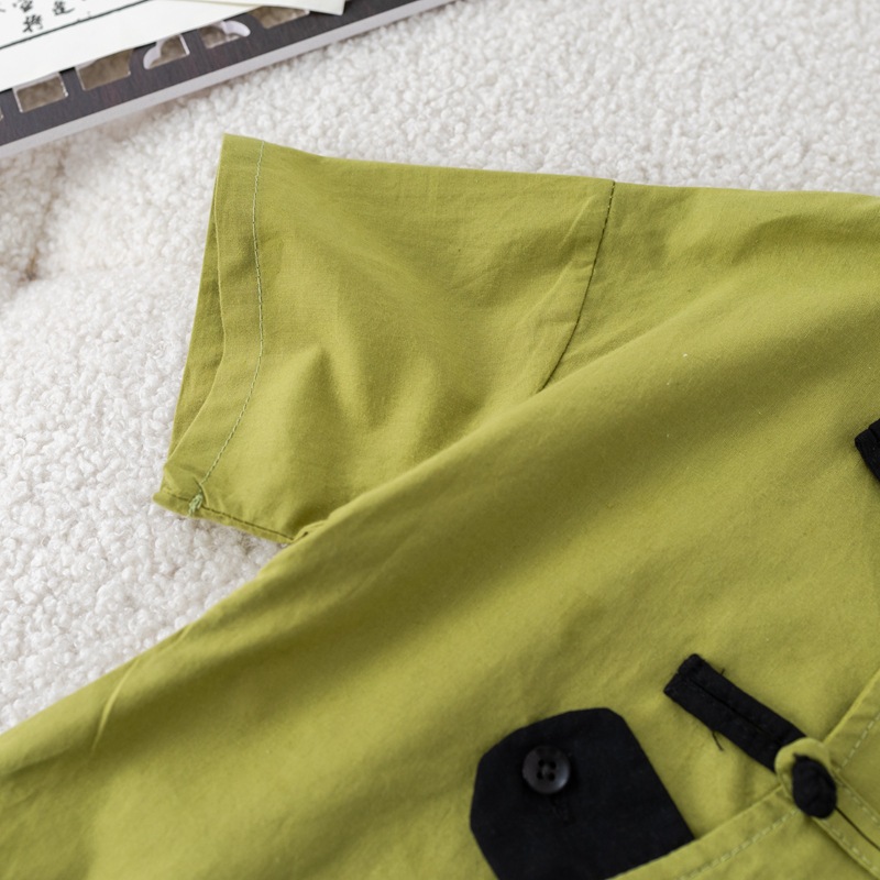 Guofeng 아동복 여름 2024 년 새 소년 소녀 한푸 셔츠 버클 반팔 투피스 아기 옷 패션스토어 가기