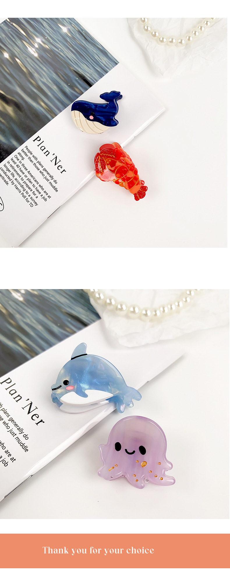 작고 절묘하며 귀여운 바다 트럼펫 아세트산 클립 조가비 만화 헤어 액세서리 돌고래 헤어 클립 앞머리 클립 쥬얼리 여성용스토어 가기