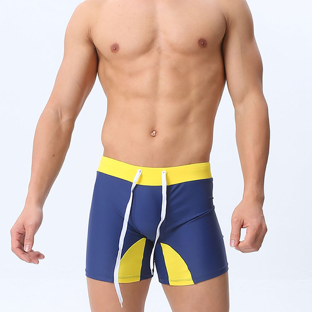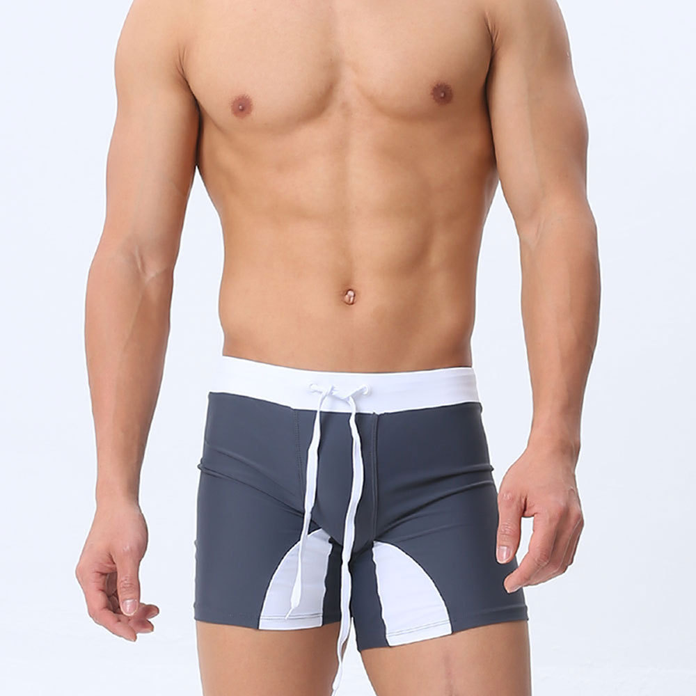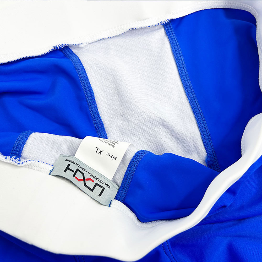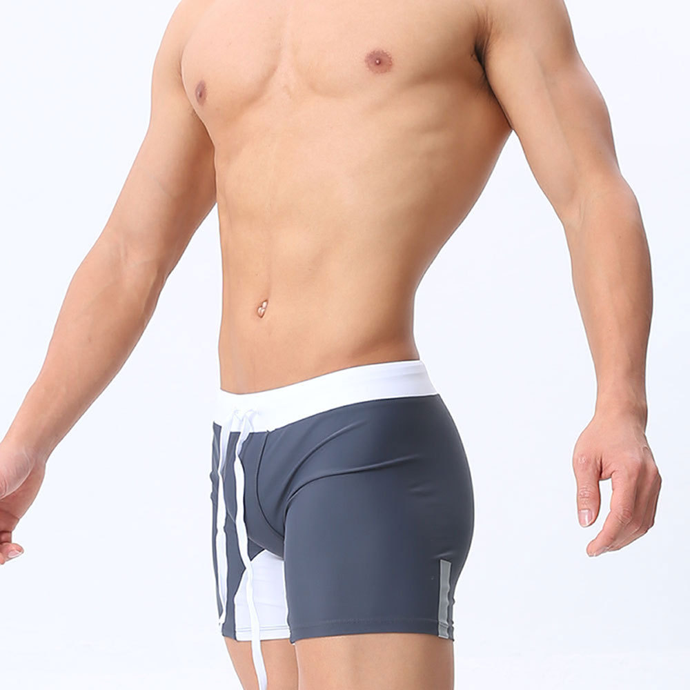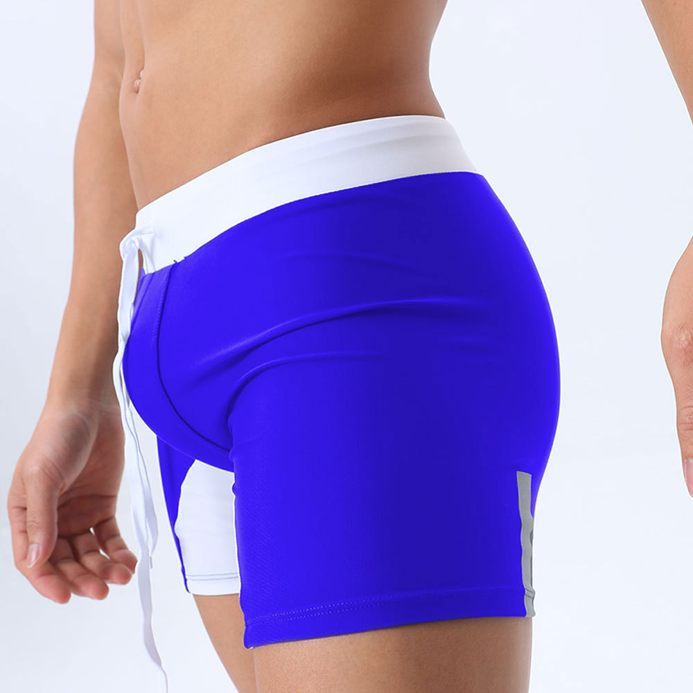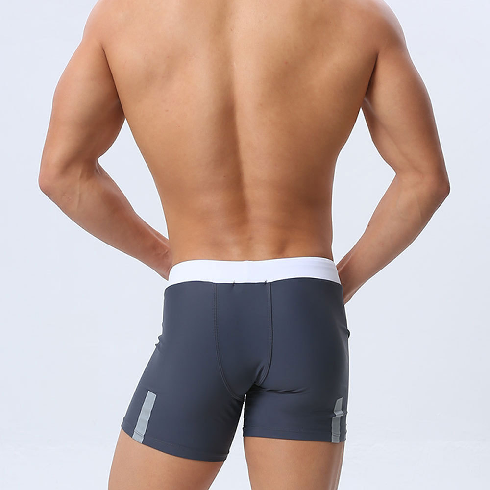 UXH 남자 3 점 수영 복서 경주 반바지 긴 수영 트렁크 남자 반사 스트립 컬러 매칭 유행 타이트 반바지스토어 가기