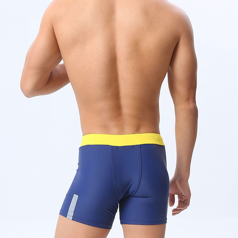 UXH 남자 3 점 수영 복서 경주 반바지 긴 수영 트렁크 남자 반사 스트립 컬러 매칭 유행 타이트 반바지