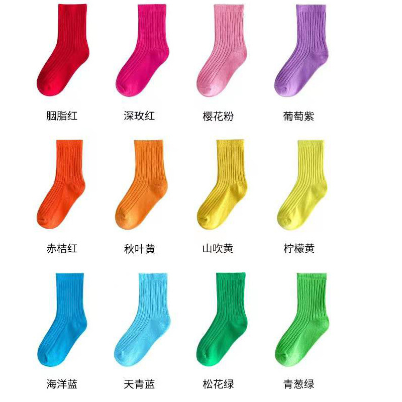 어린이 양말 봄과 여름 새로운 캔디 컬러 더블 니들 Ins 유행 형광 컬러 Combed 면 수직 줄무늬 양말 소년 소녀를위한스토어 가기