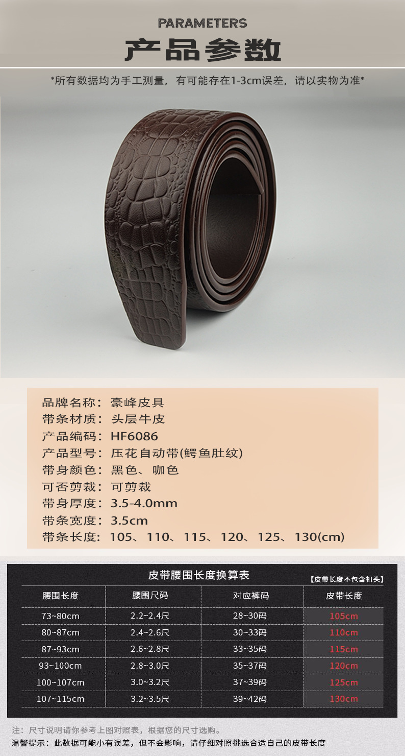 악어 벨트 공장 도매 헤드리스 벨트 자동 버클 벨트 남성용 가죽 벨트 바디 악어 벨트