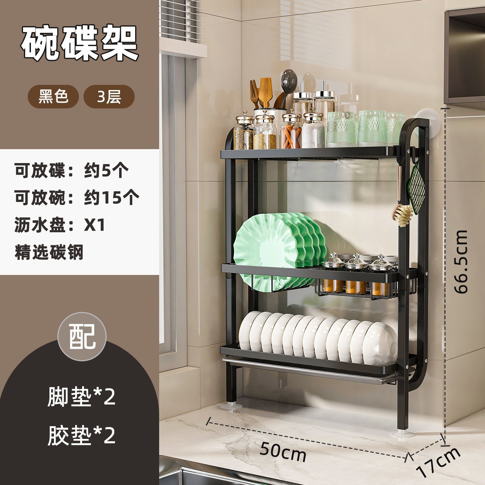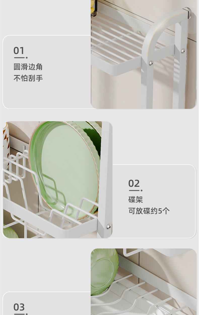 주방 보관 랙 보관 랙 보울 랙 드레인 랙 접시 랙 주방 테이블 상단 벽 3 층 접시 보관 랙