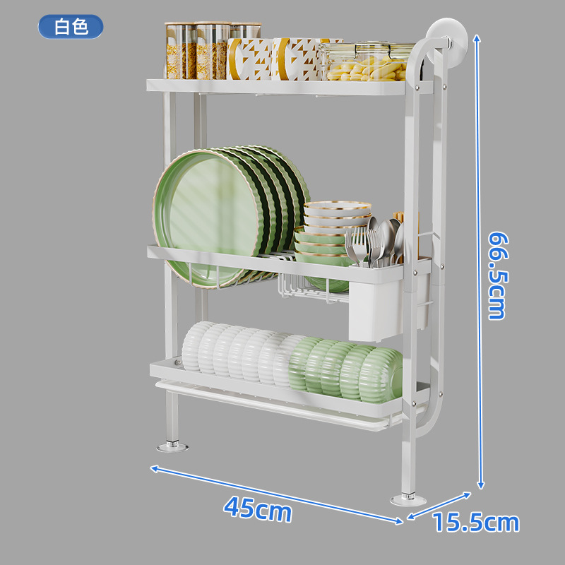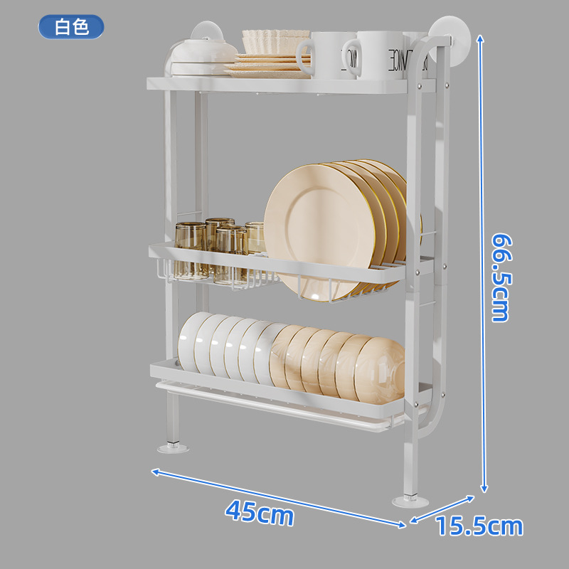 • 상단 벽 3 층 접시 랙 (3 컵 포함) 흰색