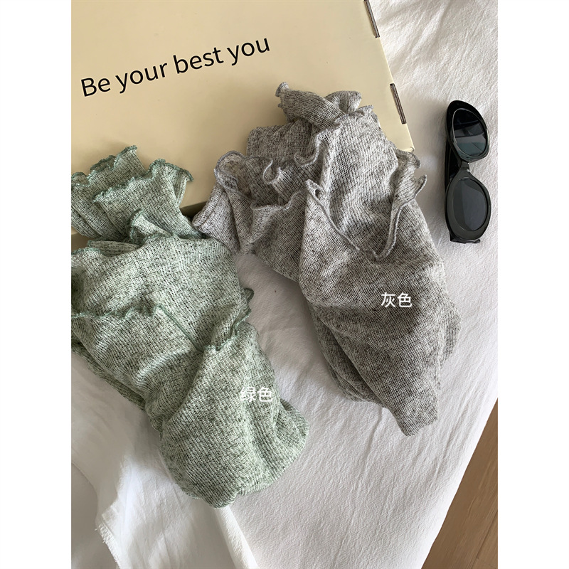 일본식 컬러 원사 V-Neck 귀 디자인 긴 소매 니트 스웨터 2024 여름 느슨한 슬리밍 올 매치 얇은 탑