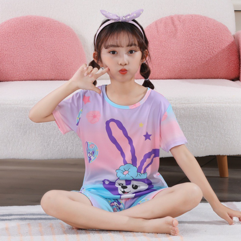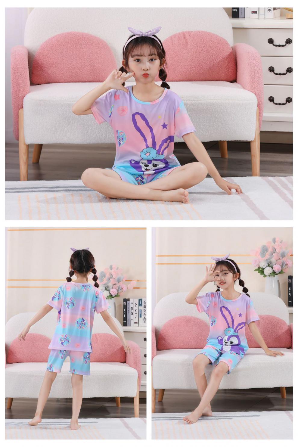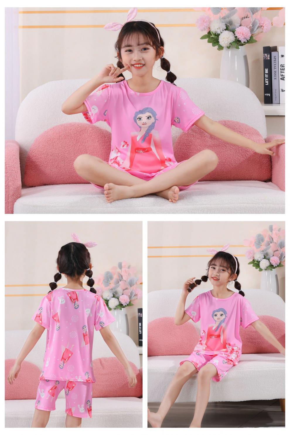 소녀 여름 반팔 반바지 세트 얇은 어린이 잠옷 여성 홈 투피스 세트 아기 소녀 잠옷 에어컨 옷스토어 가기