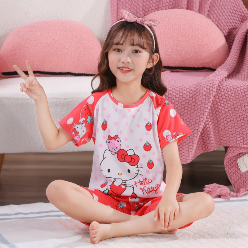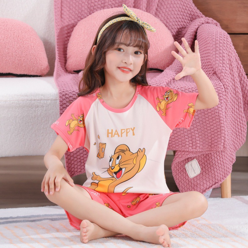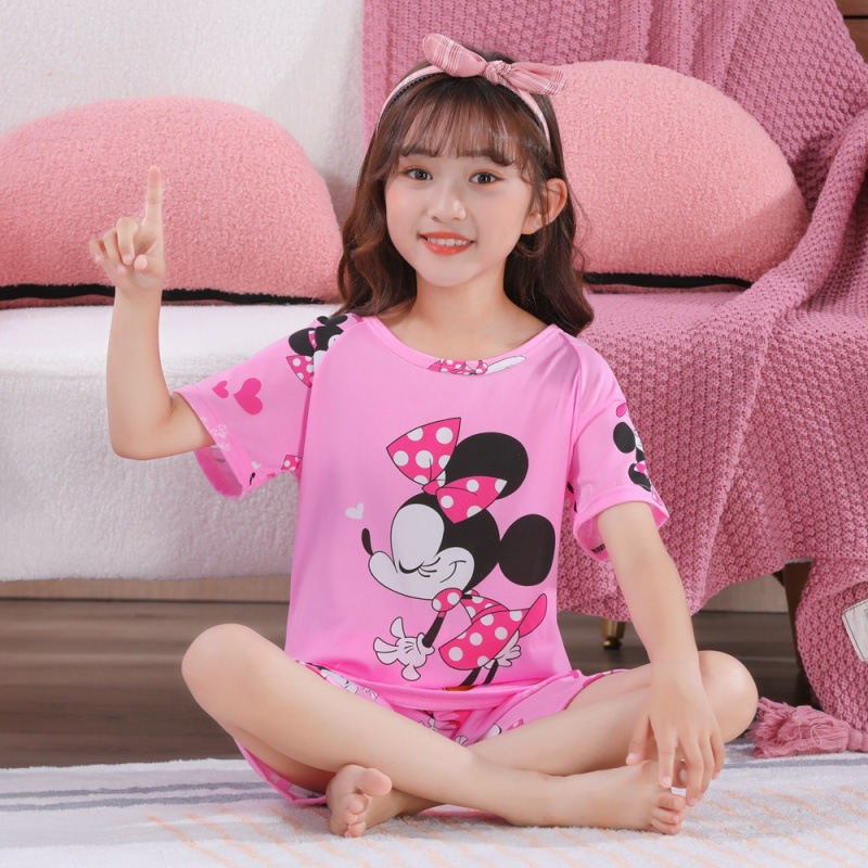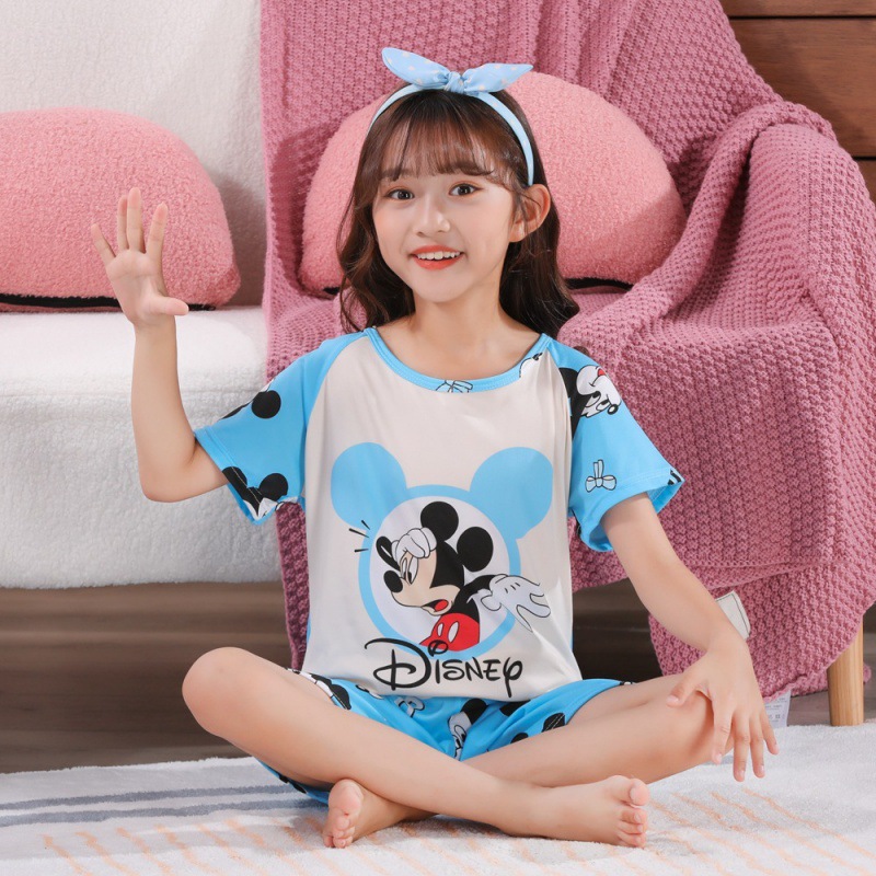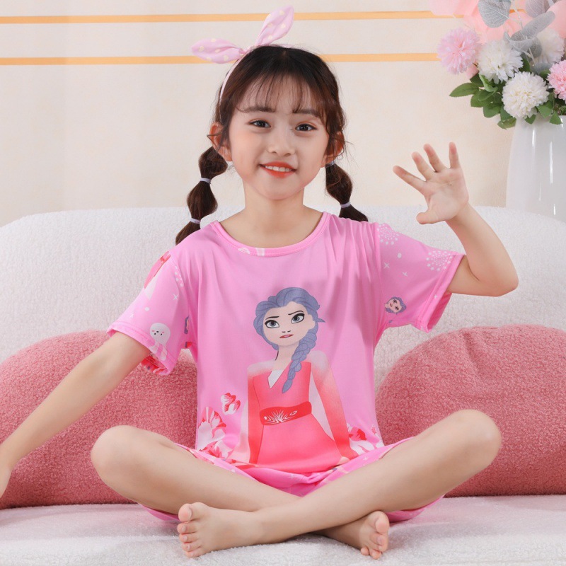 소녀 여름 반팔 반바지 세트 얇은 어린이 잠옷 여성 홈 투피스 세트 아기 소녀 잠옷 에어컨 옷스토어 가기