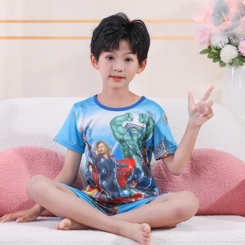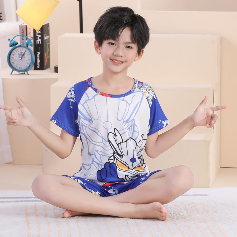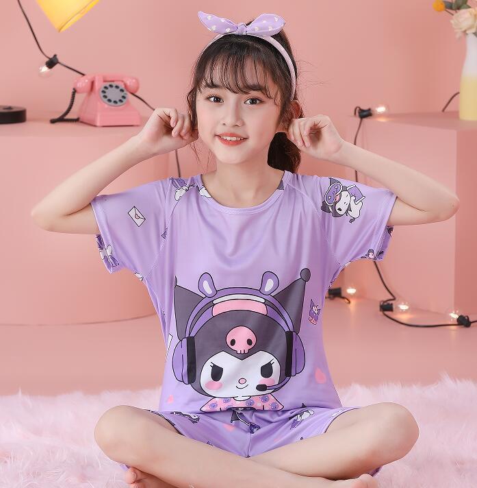 소녀 여름 반팔 반바지 세트 얇은 어린이 잠옷 여성 홈 투피스 세트 아기 소녀 잠옷 에어컨 옷