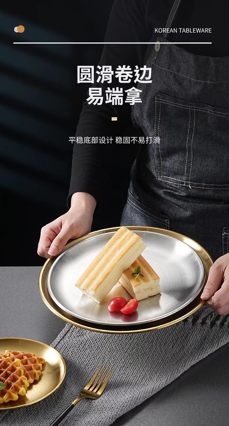 스테인레스 스틸 한국 스타일 바베큐 플레이트 뼈 침 접시 서양 음식 과일 디저트 스낵 플레이트 상업용 디스크 간단한 뷔페 플레이트
