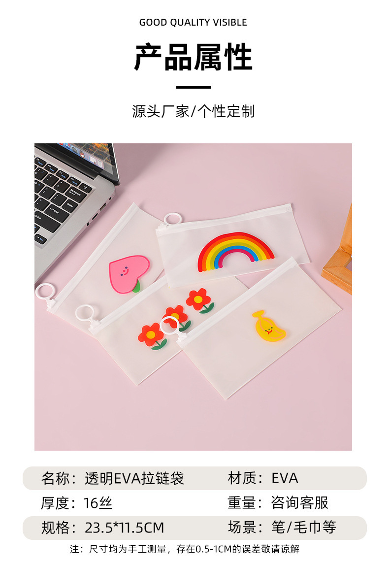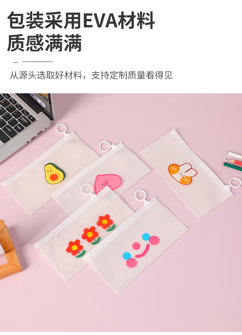 새로운 귀여운 지퍼 가방 반투명 EVA 학생 연필 가방 대용량 편지지 선물 지 플락 가방 보관