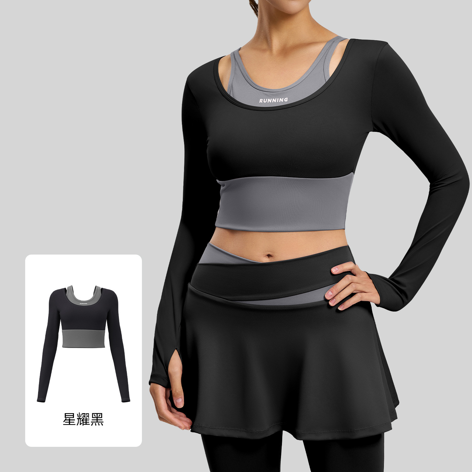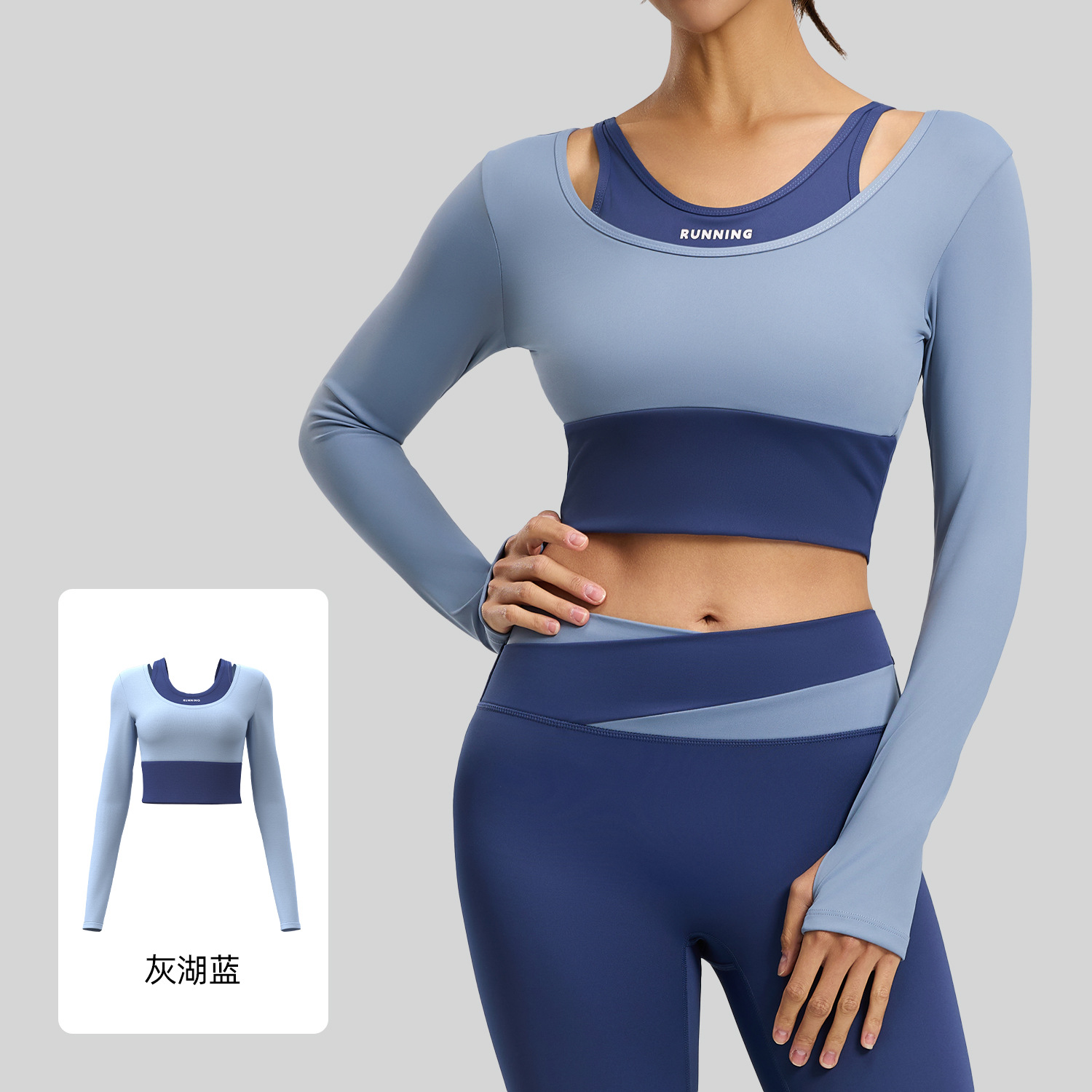 크로스보더 신상 슬림핏 스포츠 피트니스웨어, 충격방지 배색 투피스 디자인, 브라가 필요 없는 요가복스토어 가기