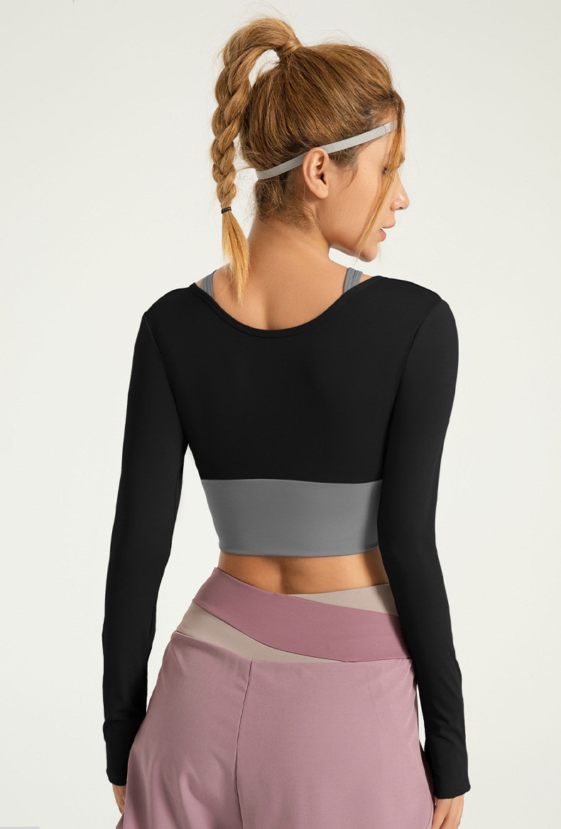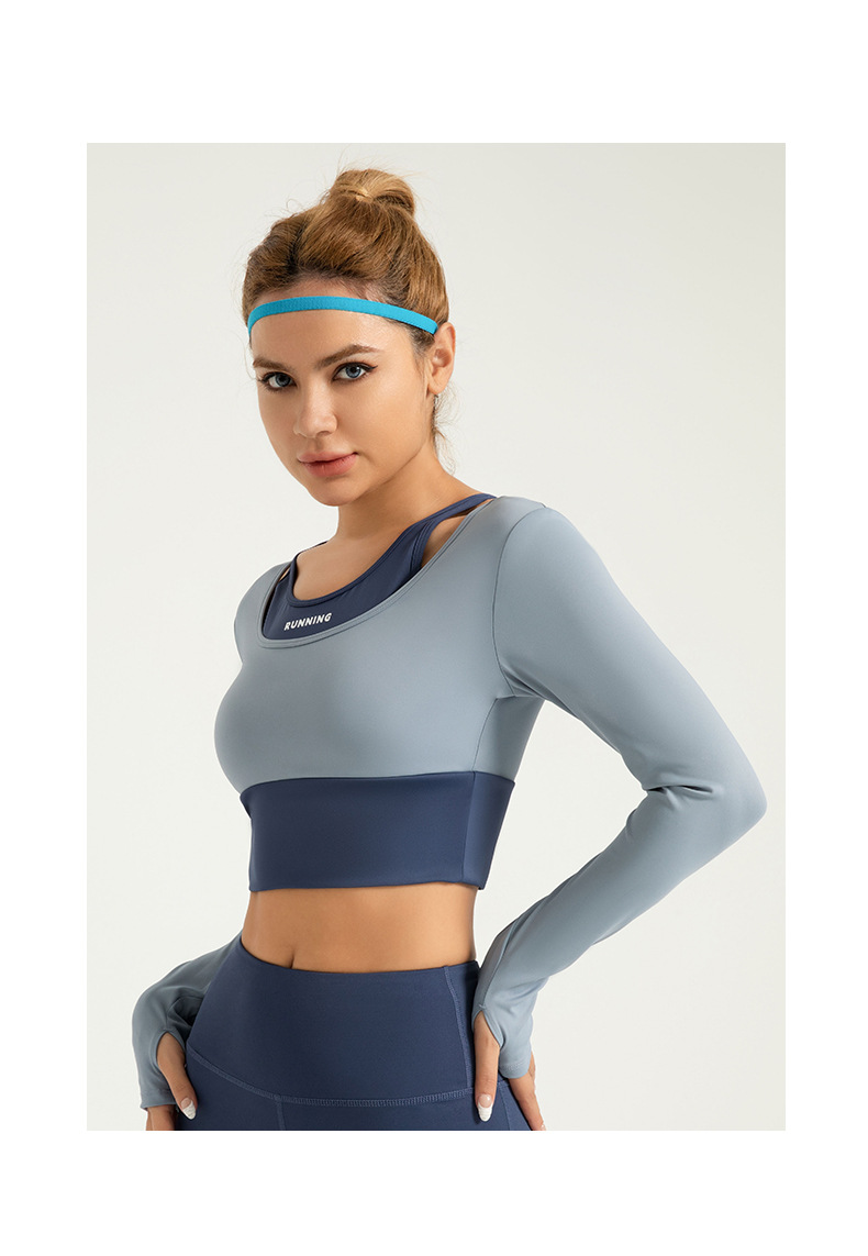 국경을 넘는 지역의 새로운 슬림핏 스포츠 피트니스복, 충격 방지 배색 투피스 디자인, 브라가 필요 없는 요가복