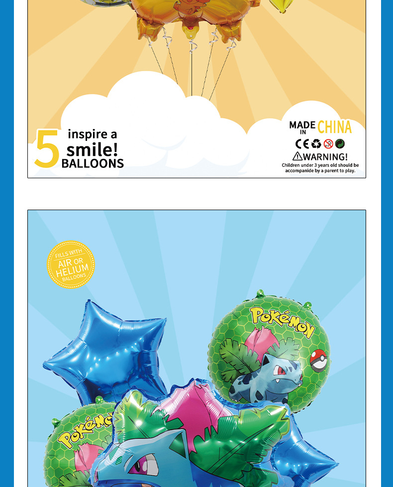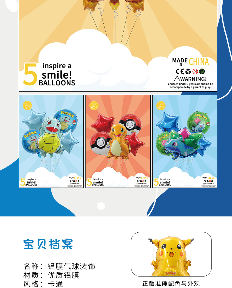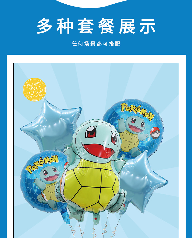 Pokémon 알루미늄 필름 풍선 패키지 Pikachu Jeni 거북이 모델링 패키지 풍선 생일 파티 장식 풍선스토어 가기