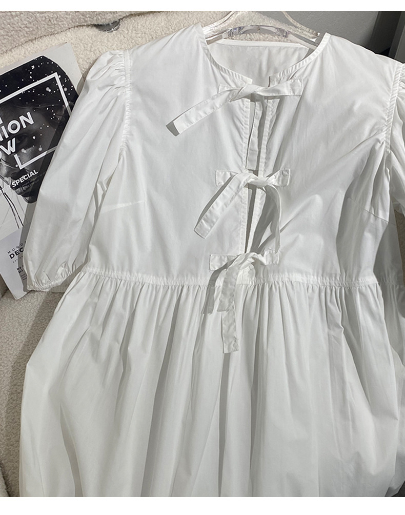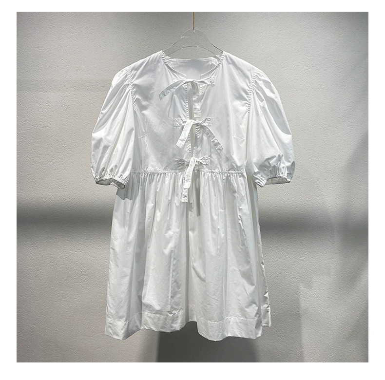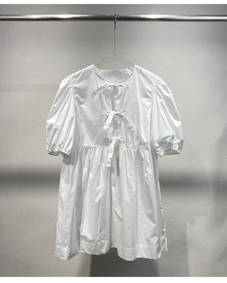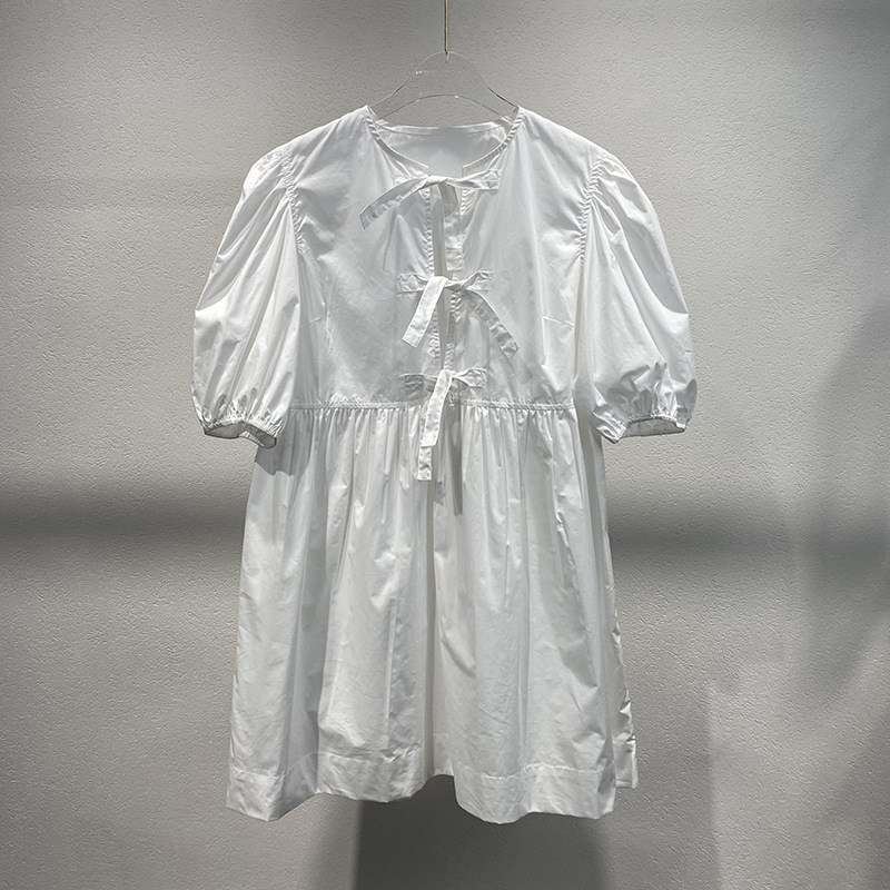 틈새 2024 봄과 여름 여성을위한 새로운 화이트 레이스 업 코튼 포플린 미니 원피스스토어 가기