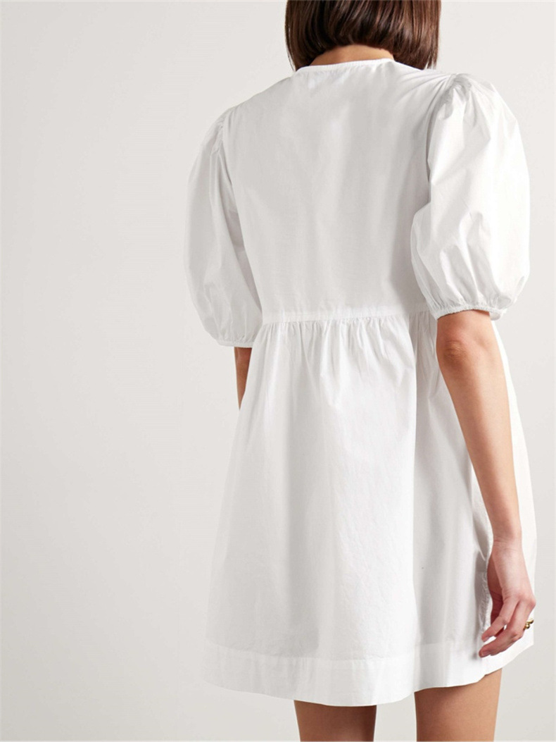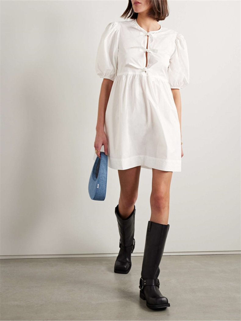 틈새 2024 봄과 여름 여성을위한 새로운 화이트 레이스 업 코튼 포플린 미니 원피스