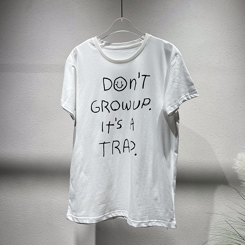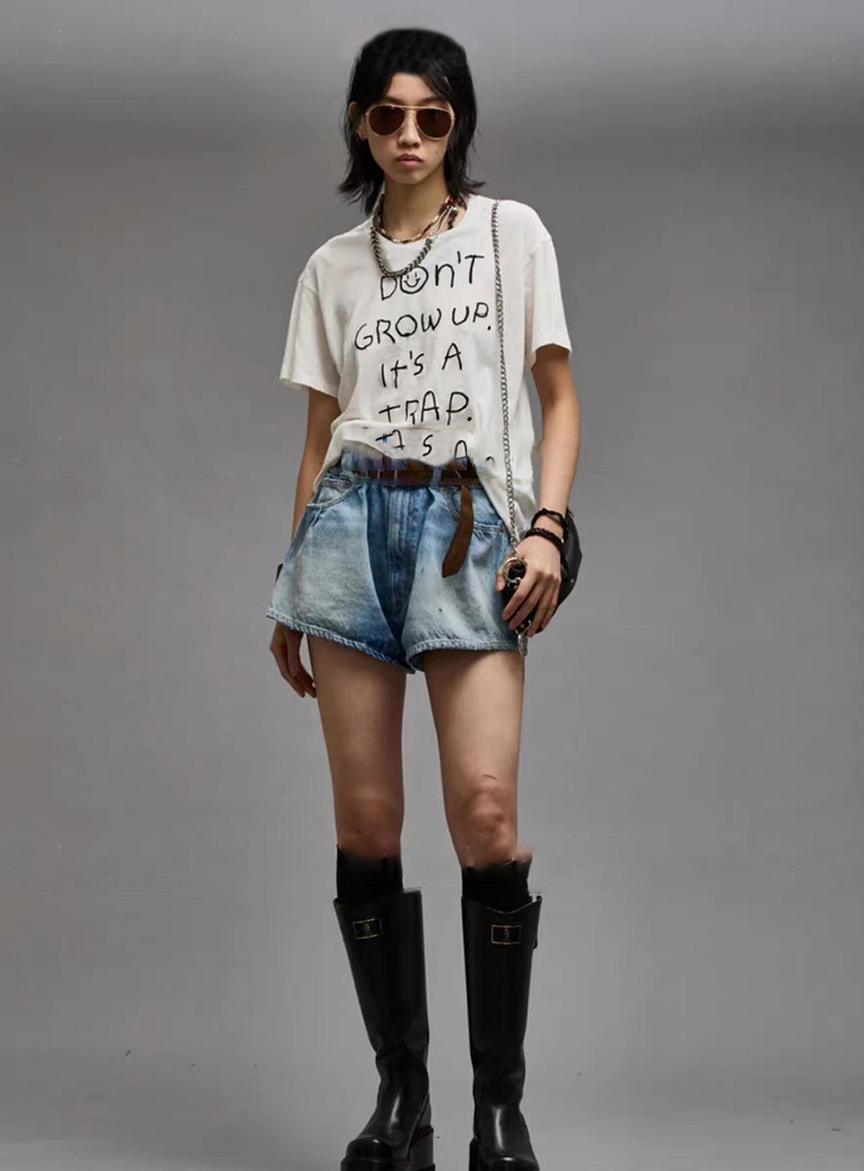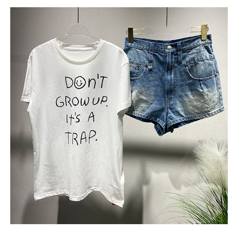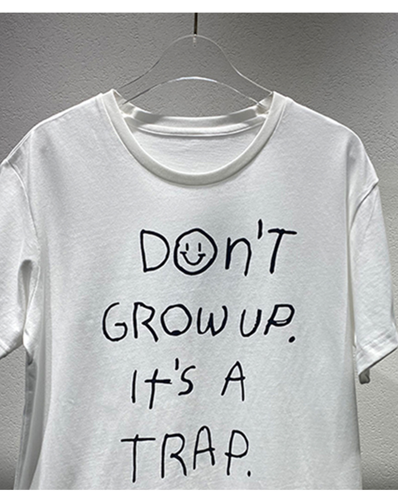 Xiaozhong 2024 봄과 여름 새로운 흰색 승무원 편지 인쇄 느슨한 반팔 티셔츠 탑