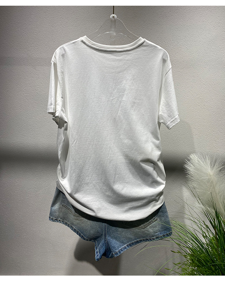 Xiaozhong 2024 봄과 여름 새로운 흰색 승무원 편지 인쇄 느슨한 반팔 티셔츠 탑스토어 가기