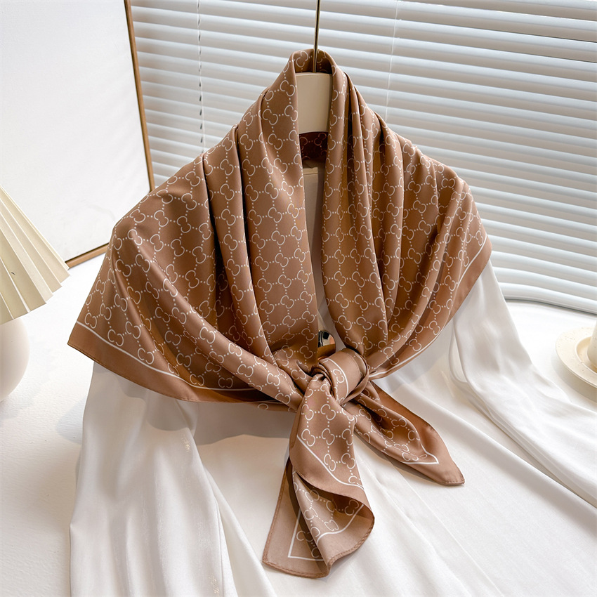 한국 스타일 샤넬 스타일 인쇄 실크 스카프 90cm 트윌 실크 스카프 간단한 단색 대형 스퀘어 새로운 선 스크린 목도리 머리 스카프스토어 가기