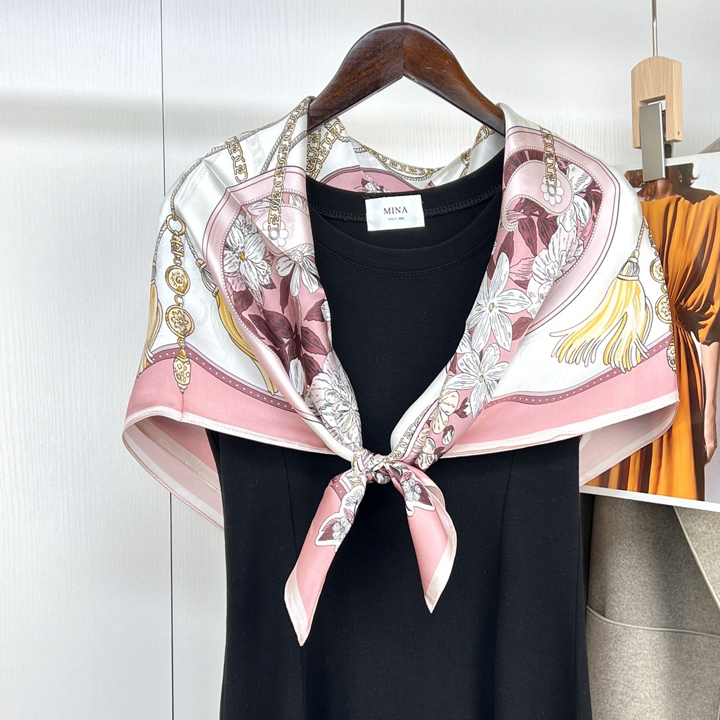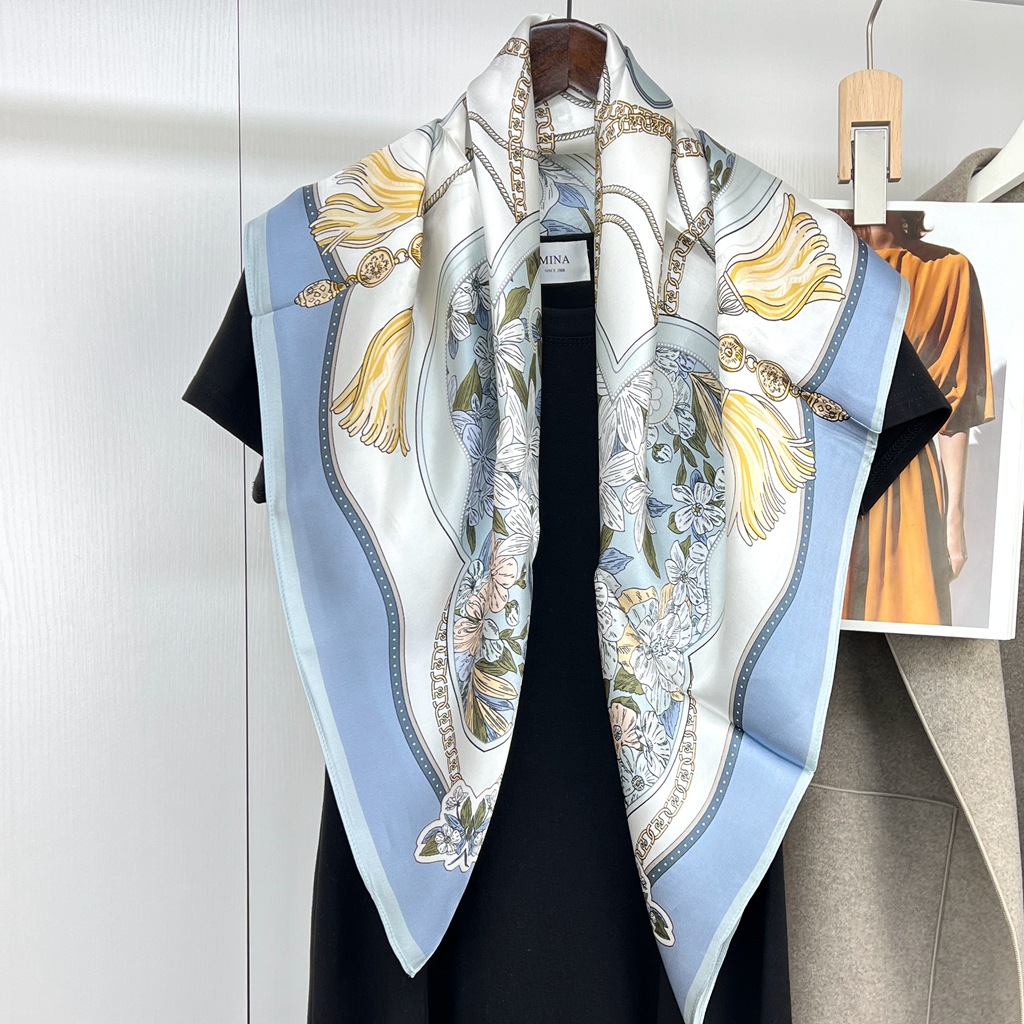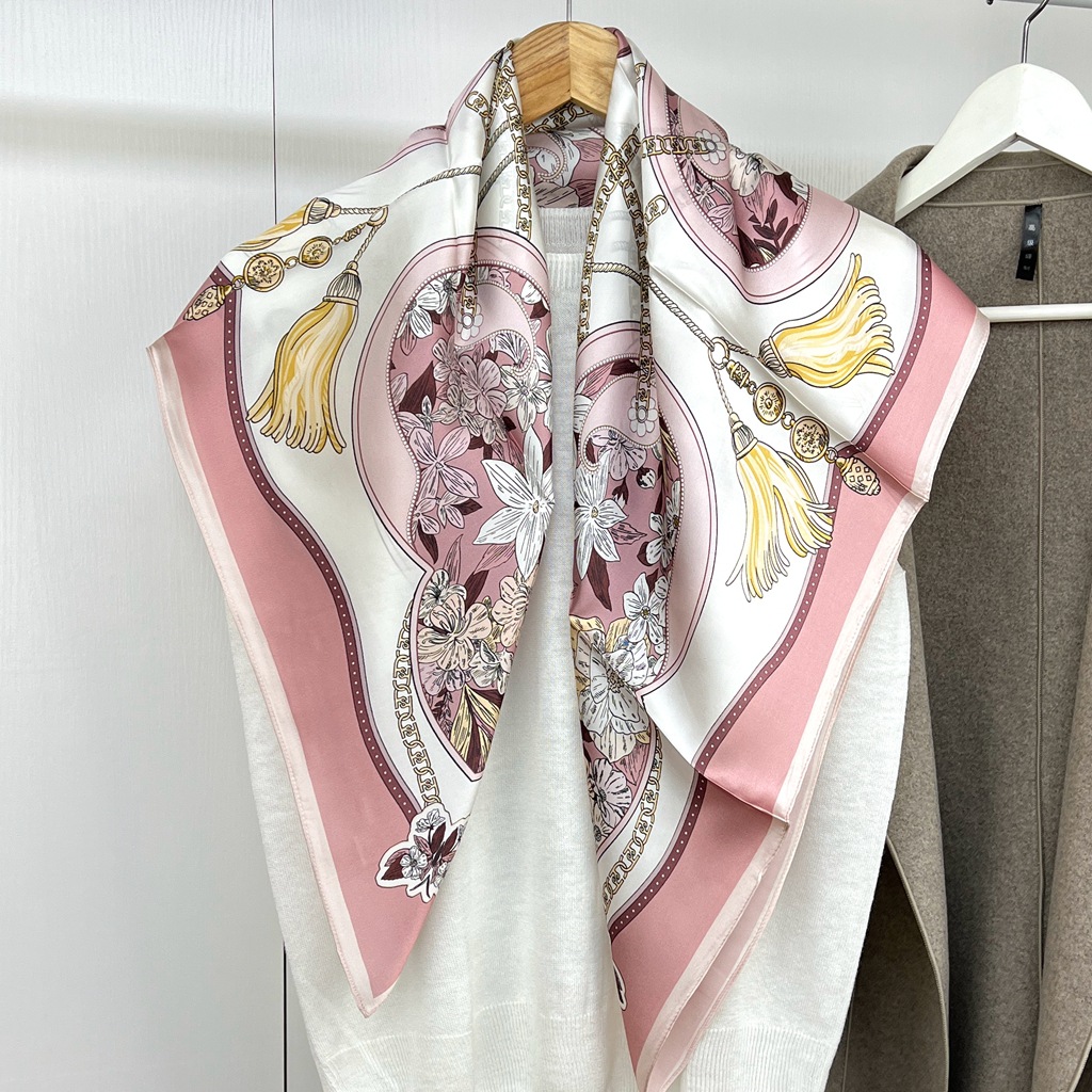 항주 실크 실크 새틴 대형 스퀘어 스카프 여성 90cm 뽕나무 실크 스카프 도매 유럽과 미국 스타일 봄 새로운 올 매치