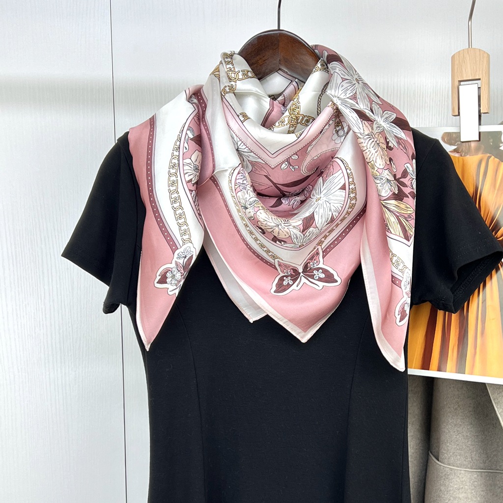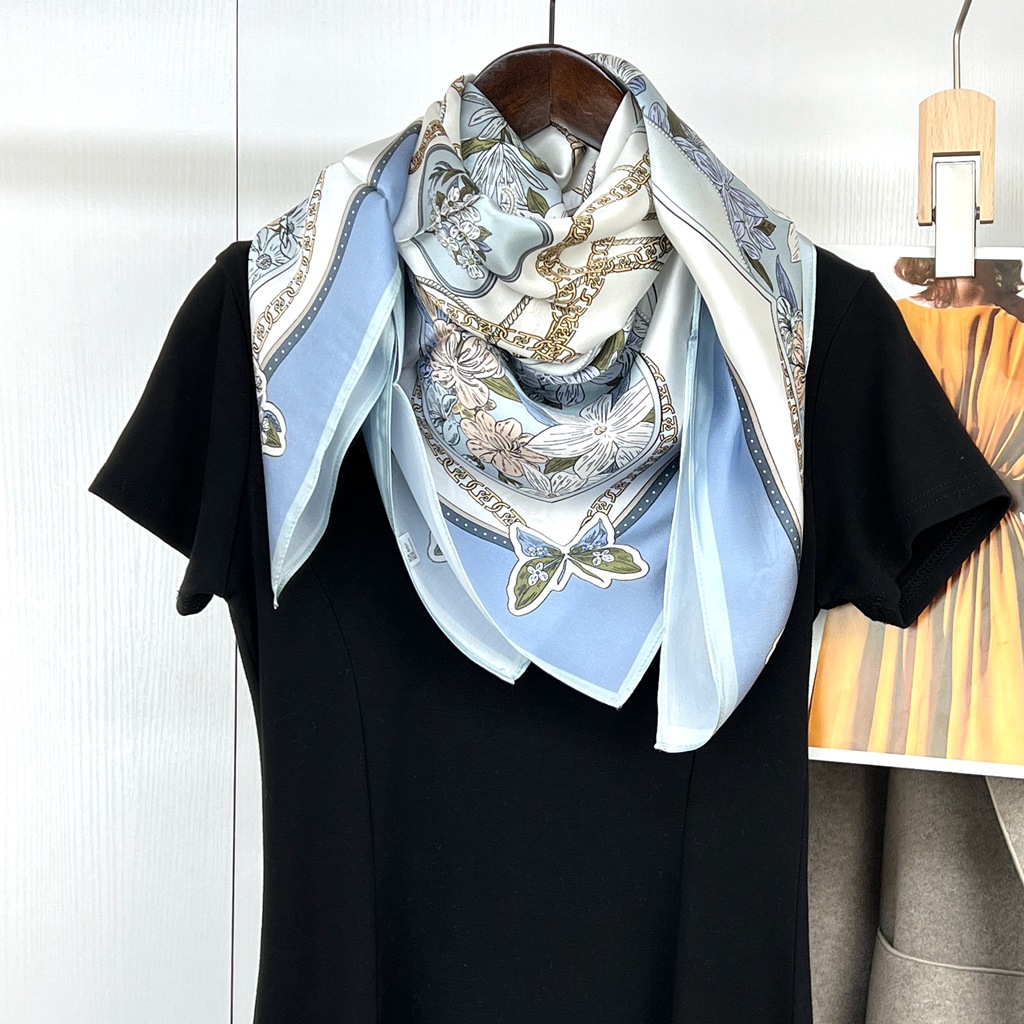 항주 실크 실크 새틴 대형 스퀘어 스카프 여성 90cm 뽕나무 실크 스카프 도매 유럽과 미국 스타일 봄 새로운 올 매치스토어 가기
