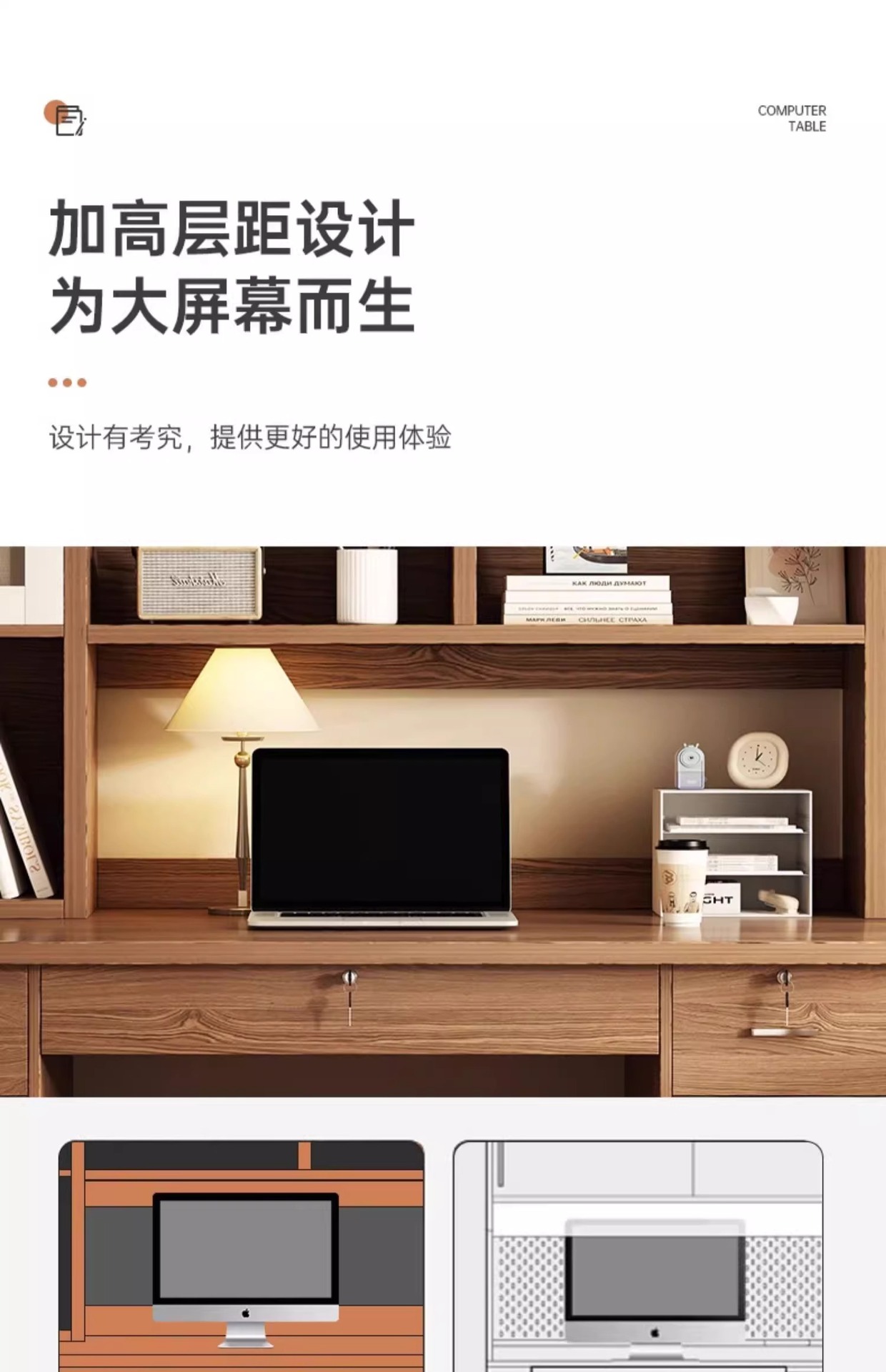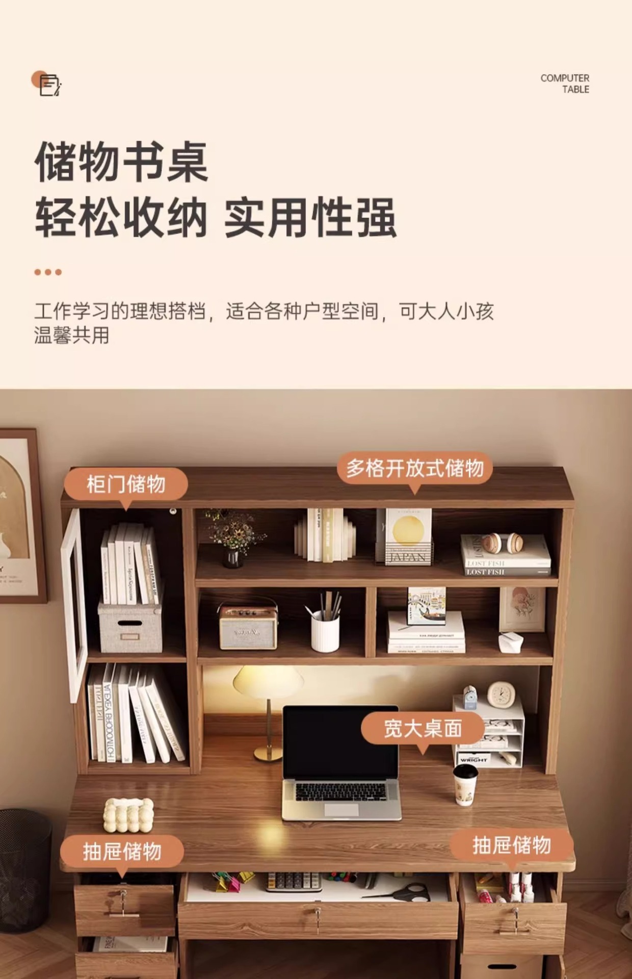 간단한 현대 침실 컴퓨터 책상 사무실 책상 책장 통합 테이블 학생 가정 연구 테이블 쓰기 테이블
