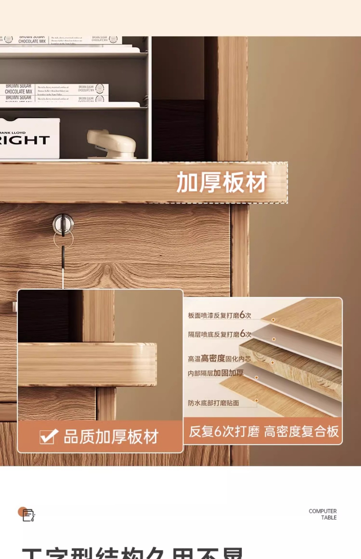 • [아크릴 수납장 도어 테이블과 의자 조합] 와일드오크 컬러 120cm (서랍 5개, 수납장 1개)