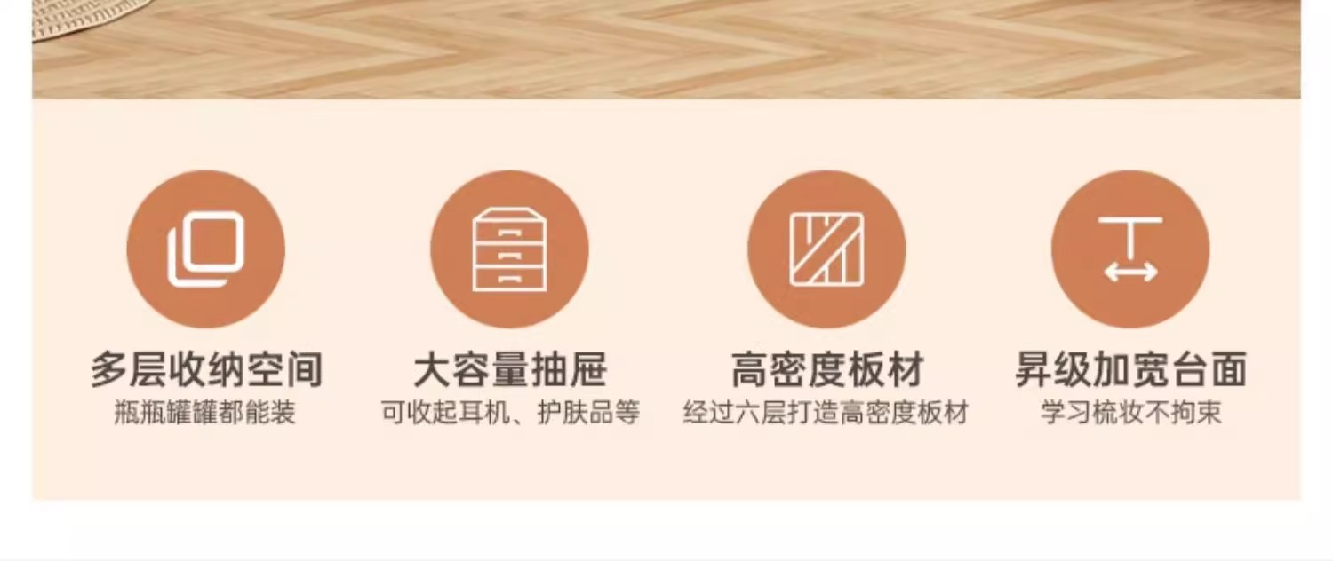 • [아크릴 수납장 도어 테이블과 의자 조합] 패스토럴 오크 컬러 120cm (서랍 5개, 수납장 1개)