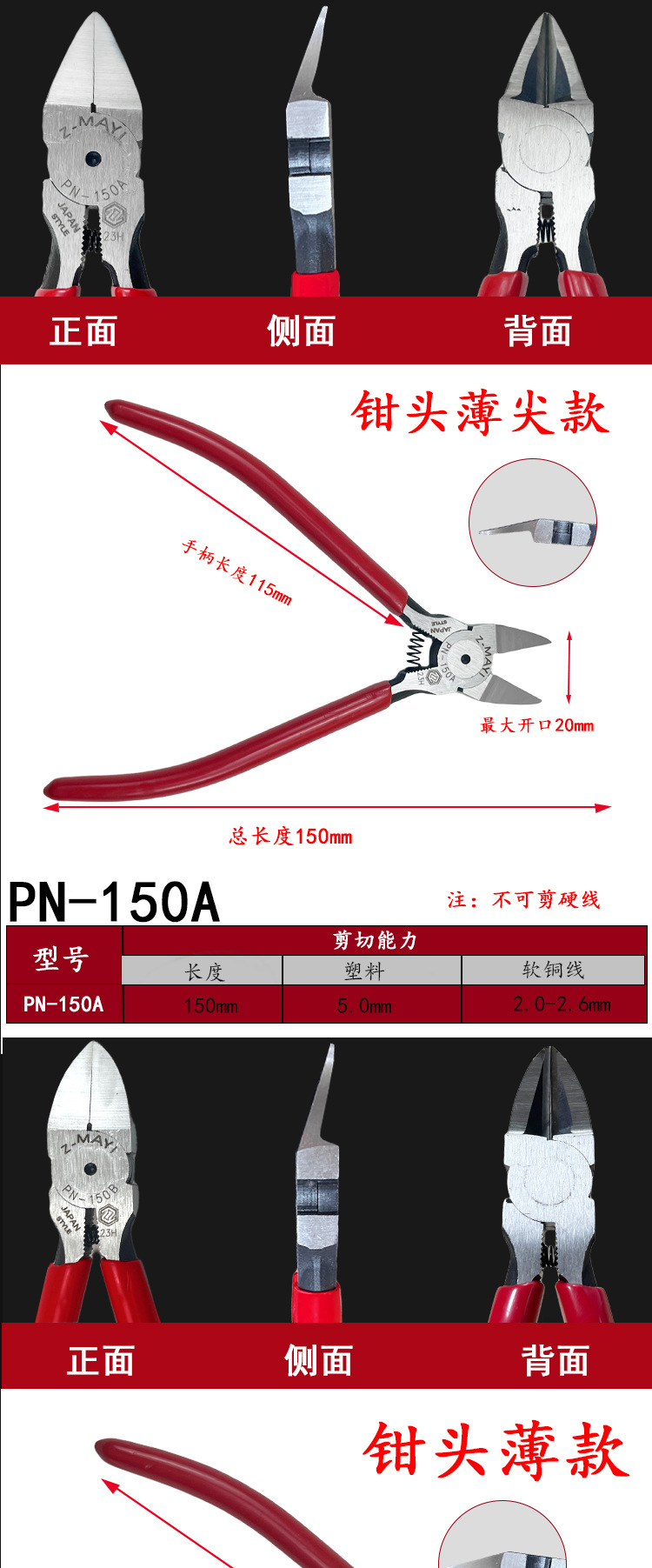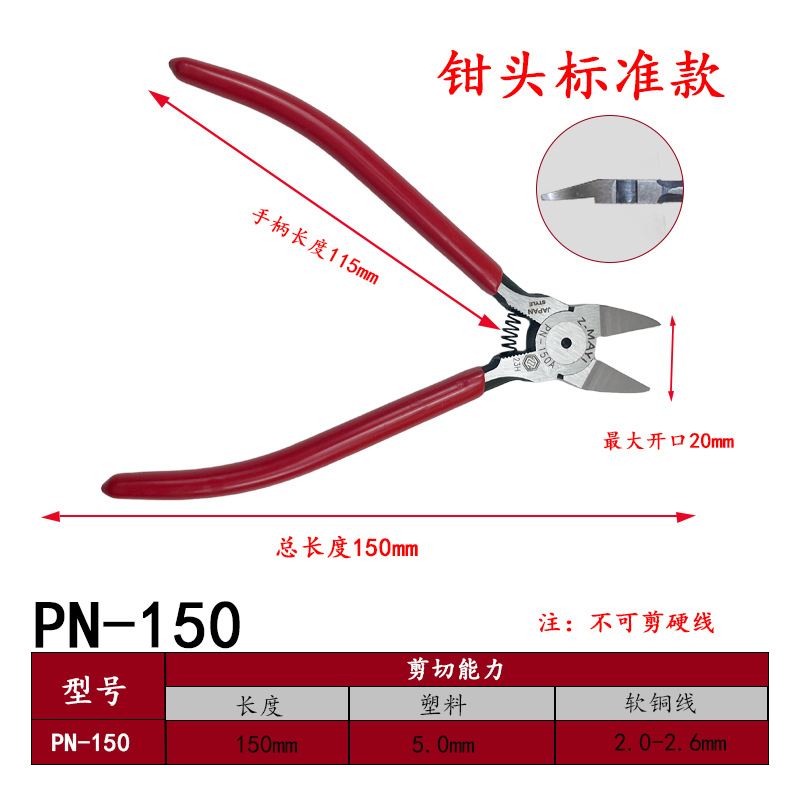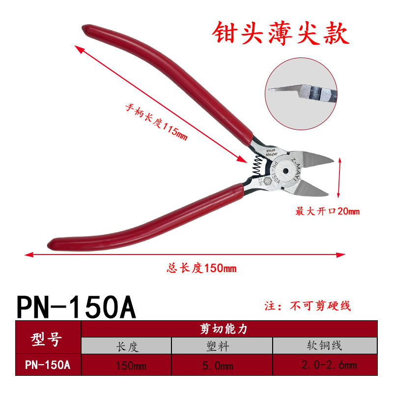 일본 수입 물 입 펜치 대만 Z-MAYI 얇은 블레이드 플라스틱 절단 펜치 비행기 뾰족한 입 부분 입 펜치 PN-150