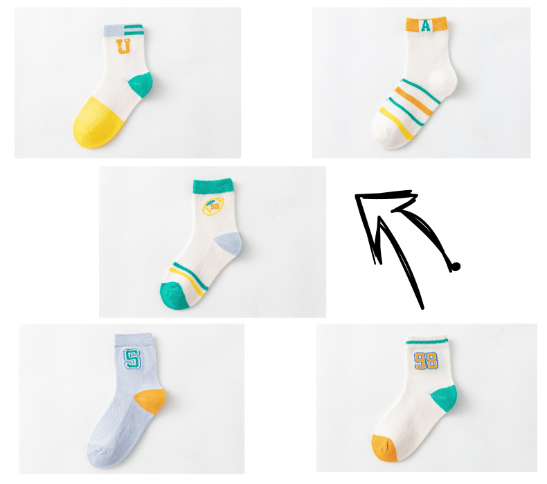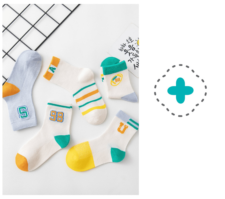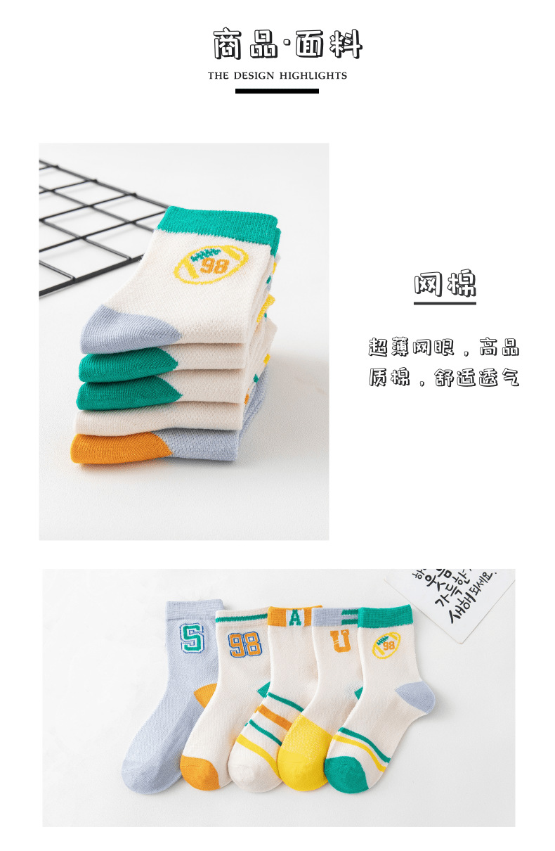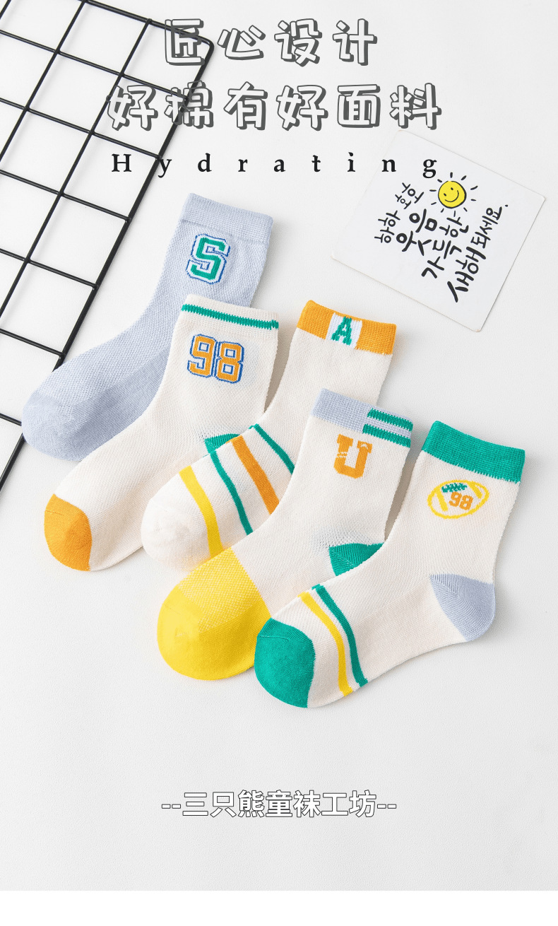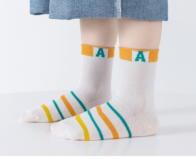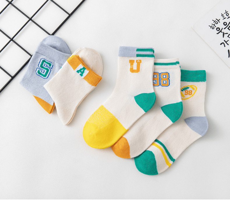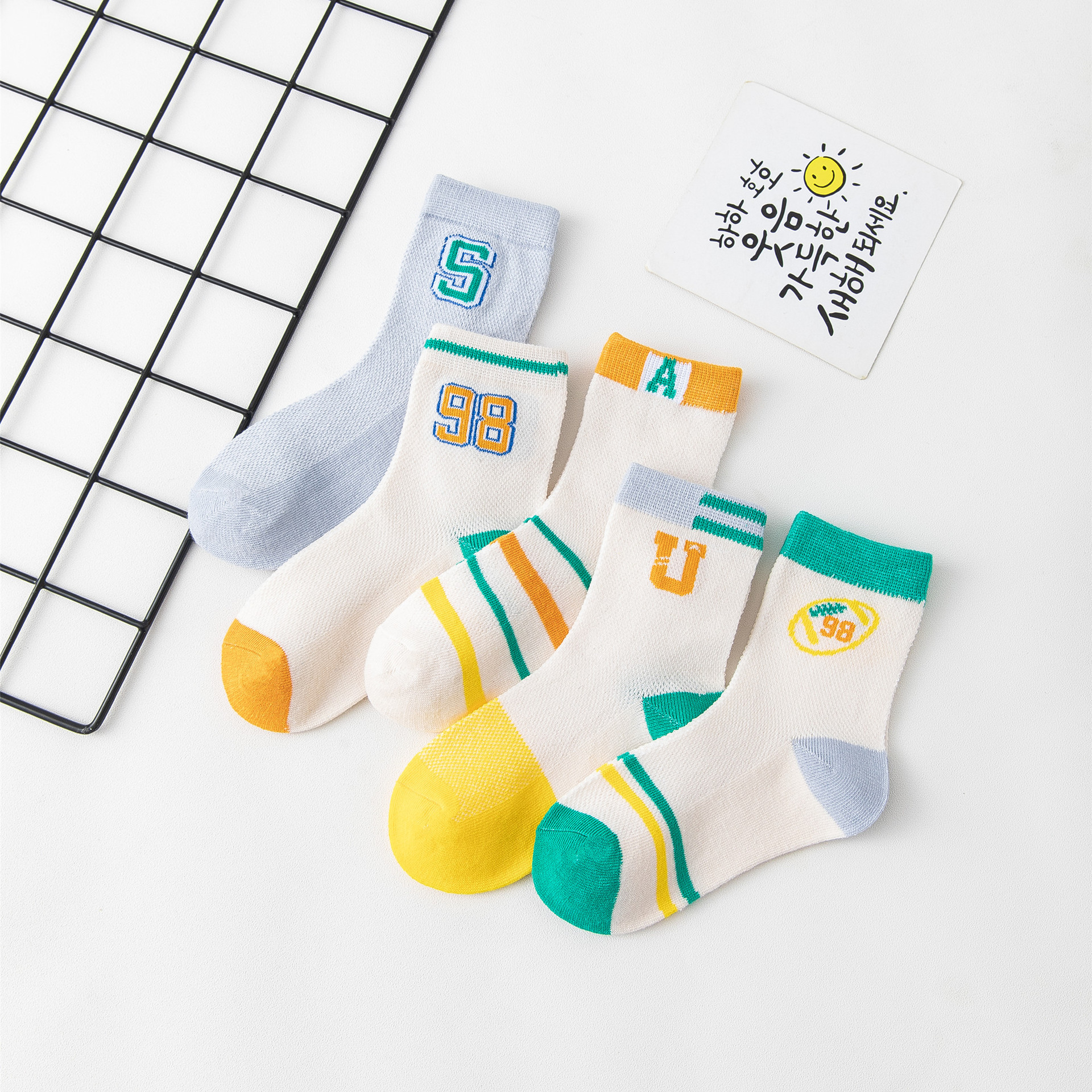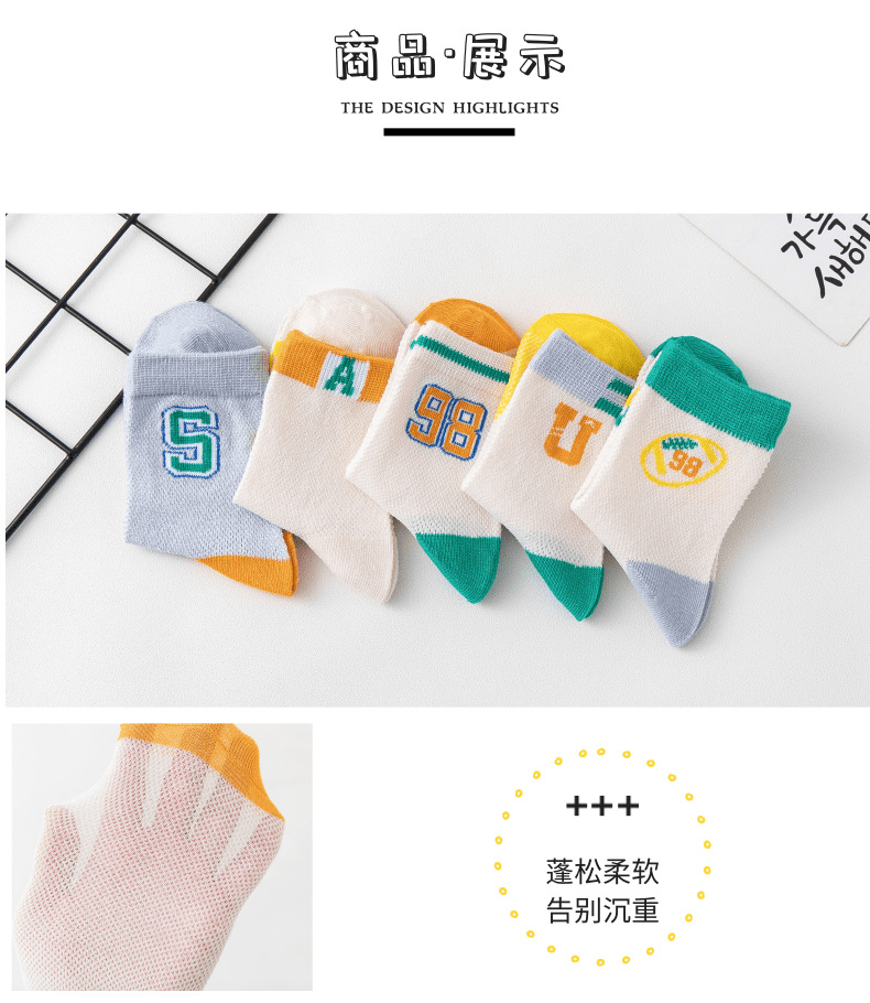 어린이의 얇은면 양말 어린이 도매 여름 소년 중형 및 대형 어린이 편지 메쉬 통기성 땀 흡수성 어린이 양말스토어 가기