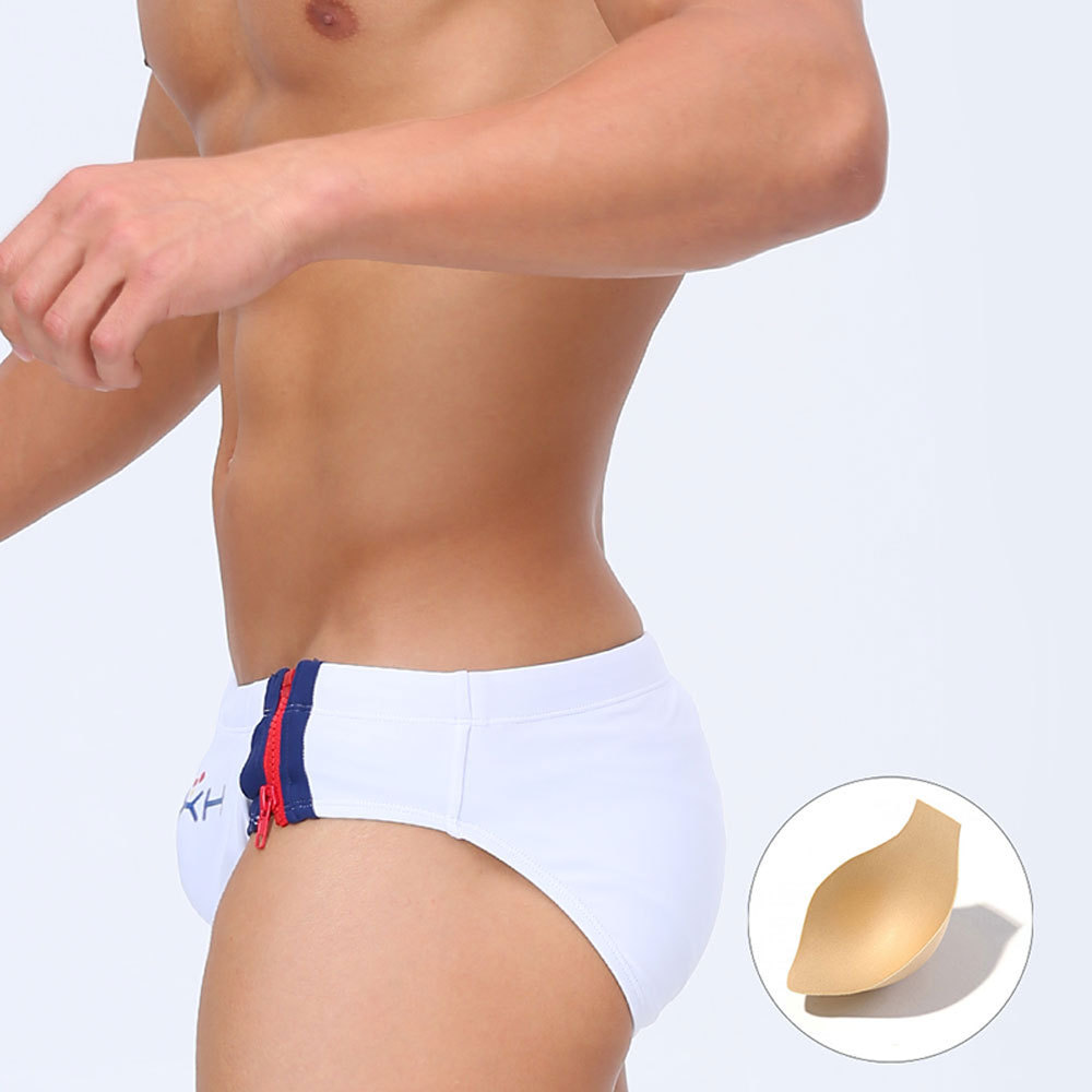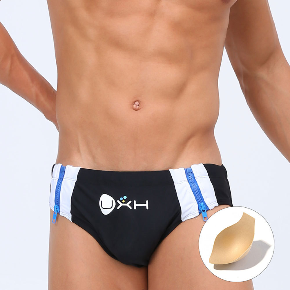 UXH 새로운 오리지널 디자인 퀵 릴리스 남자 삼각형 수영 트렁크 사이드 더블 지퍼 컵 섹시한 삼각형 수영 트렁크스토어 가기