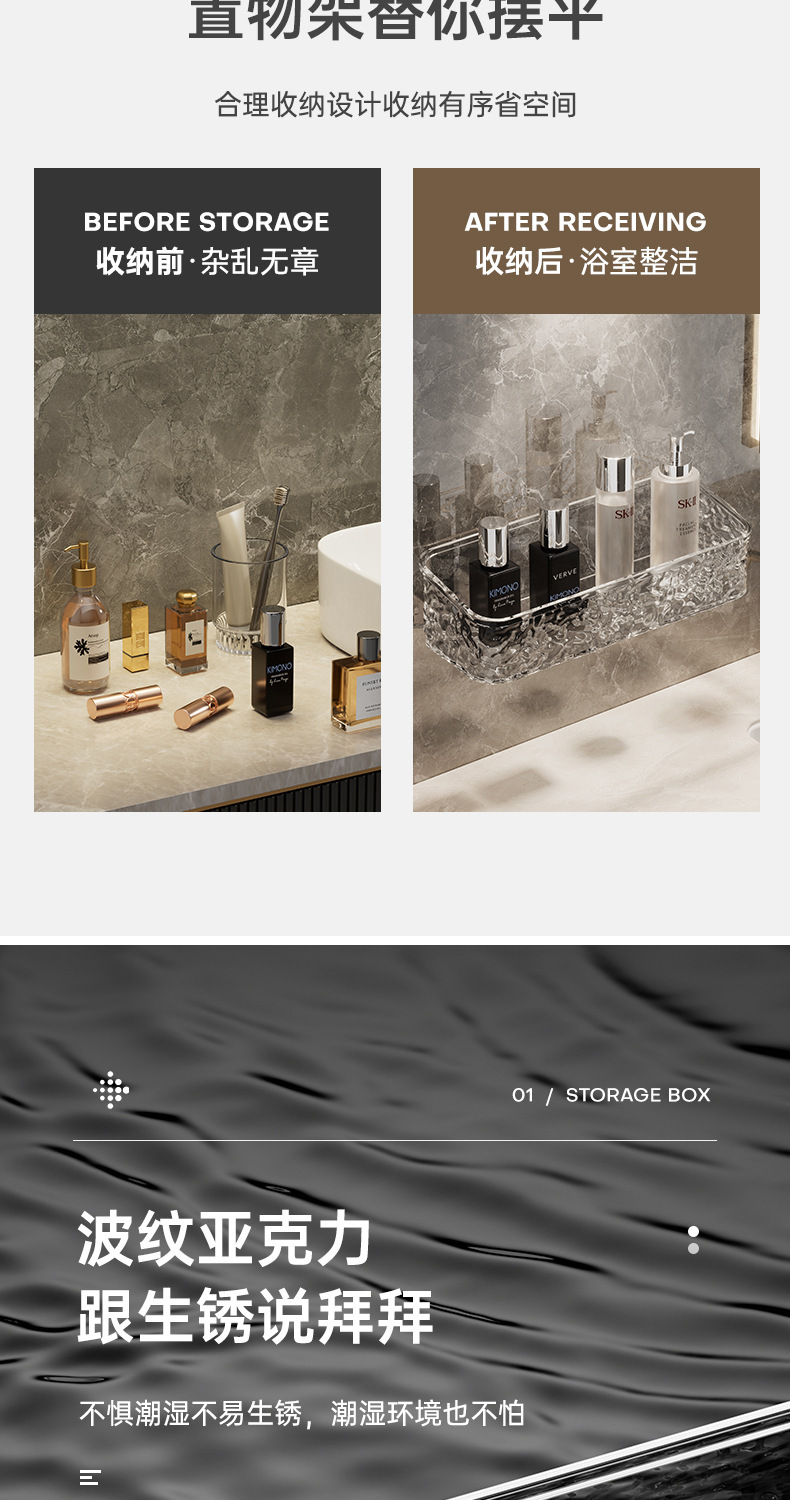 ZT3388 물 골판지 욕실 랙 라이트 럭셔리 천공되지 않은 벽 교수형 욕실 세면대 데스크탑 랙