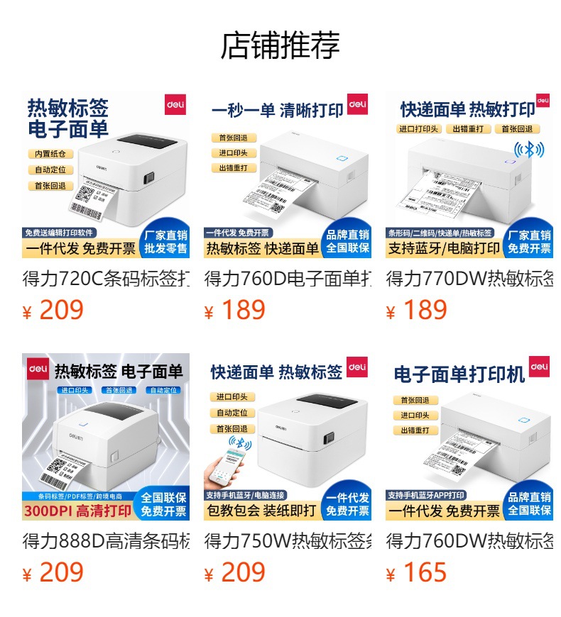 델리 888D HD 바코드 라벨 프린터 자체 접착 열 스티커 익스프레스 전자 싱글 독립형스토어 가기