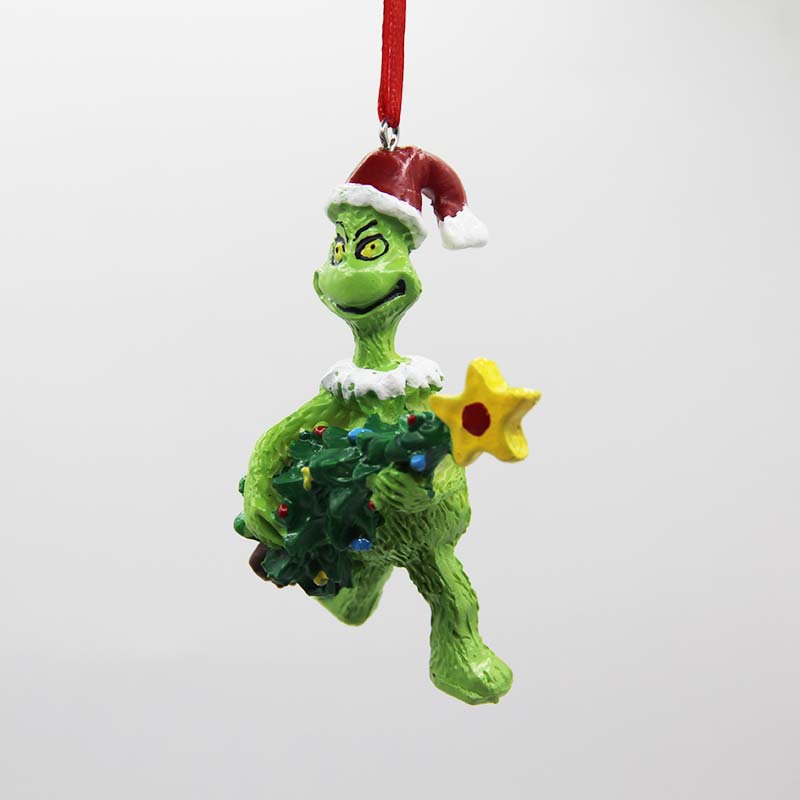 국경 간 신제품 그린 헤어 몬스터 크리스마스 트리 펜던트 그린 인치 수지 공예 크리스마스 장식 장식품스토어 가기