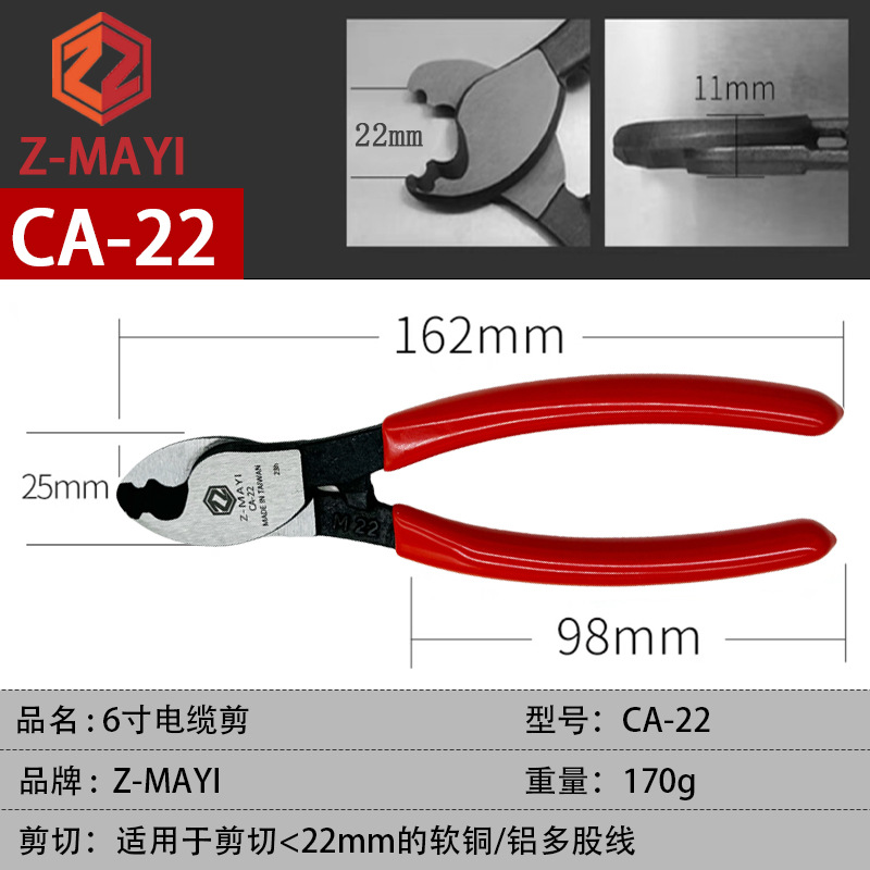 대만 Z-MAYI 케이블 가위 6 인치 8 인치 수입 스트리핑 와이어 커터 와이어 가위 CA-22 38 60
