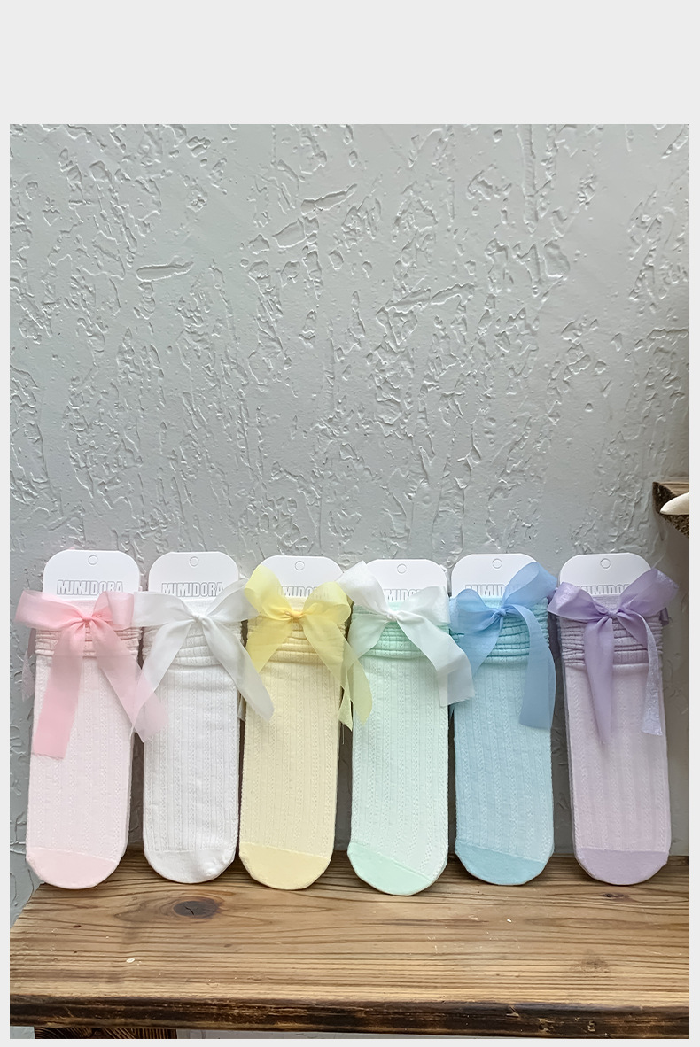 어린이 양말 봄과 여름 얇은 메쉬 통기성 아기 스타킹 소녀 캔디 컬러 활 중간 길이의 양말 면 양말