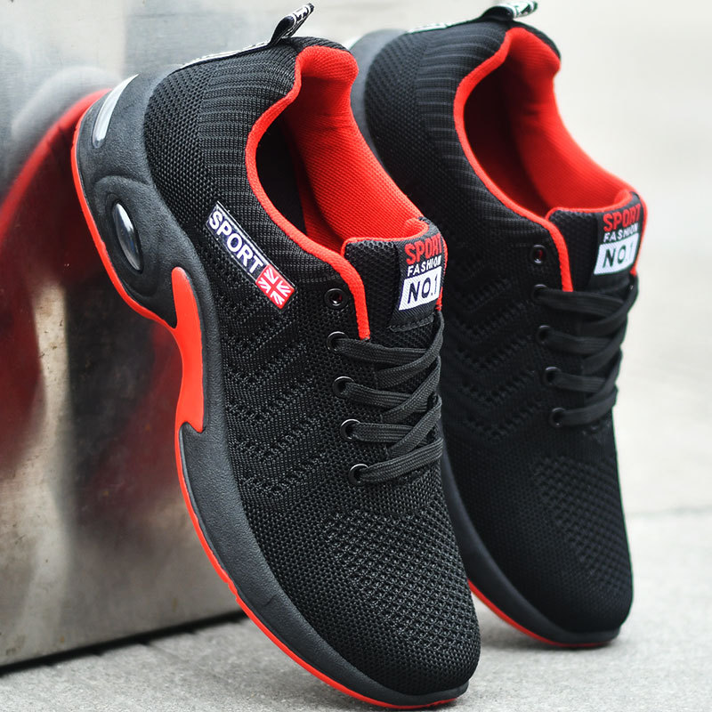 남성 신발, 메쉬 신발, 가을 통기성 플라이 니트 운동화, 남성용 런닝화, 캐주얼 트렌디 신발, 블랙 작업용 메쉬 신발