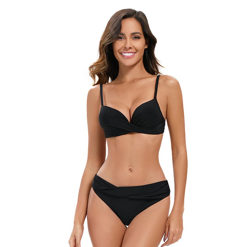 2024 대외 무역 유럽과 미국의 새로운 단색 비키니 숙녀 섹시한 백리스 레이스 업 수영복 크로스 국경 삼각형 수영복스토어 가기