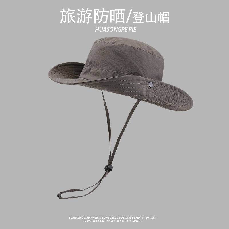 • C2525 솔리드 컬러 등산 어부 모자 로프 다크 그레이